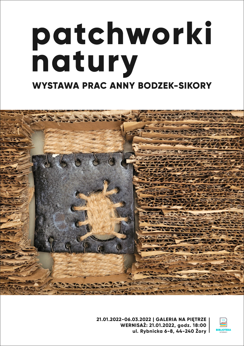 Miejska Biblioteka Publiczna w Żorach zaprasza na wystawę Anny Bodzek-Sikory pt. “Patchworki natury”, która będzie dostępna w Galerii Na Piętrze w dniach 21.01-06.03.2022. Wernisaż wystawy odbędzie się 21 stycznia 2022 roku o godzinie 18:00.