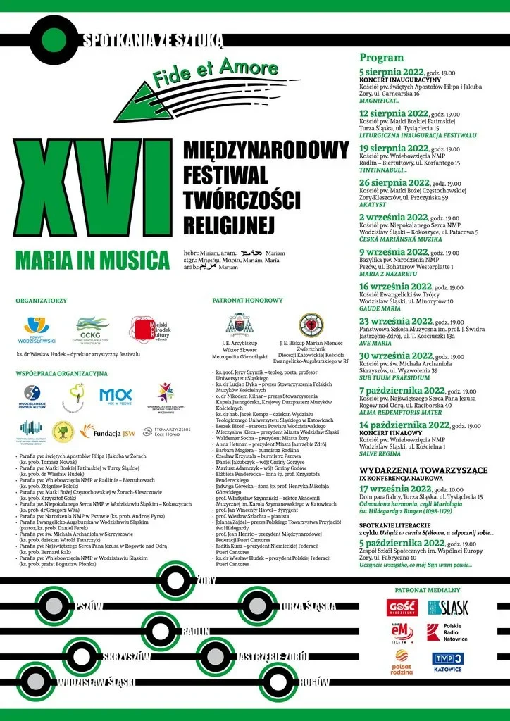 Program XVI Międzynarodowego Festiwalu Twórczości Religijnej „Fide Et Amore”: