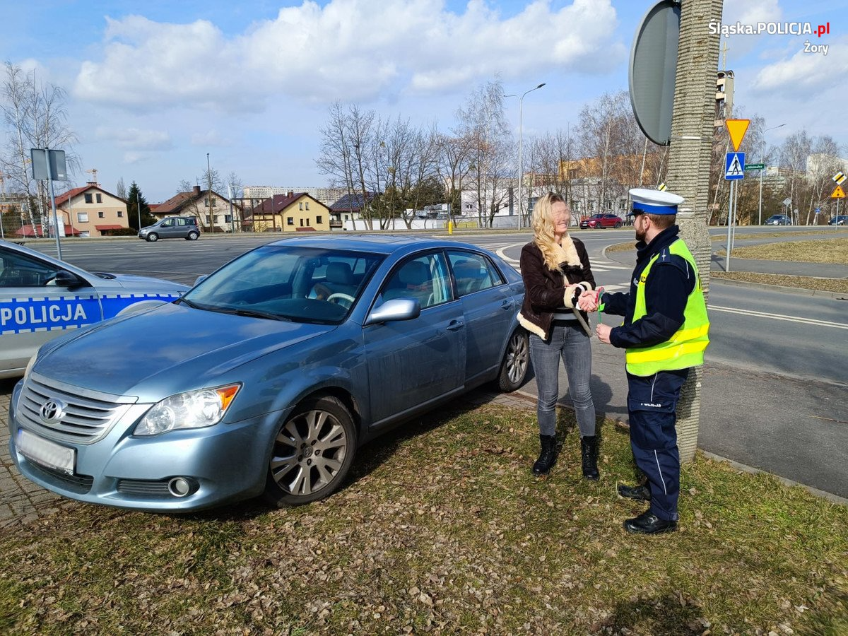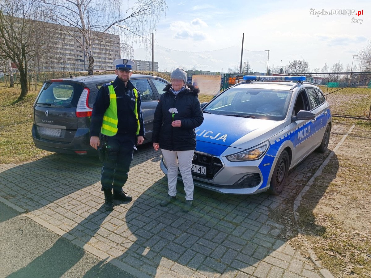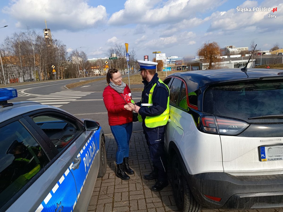 Z okazji Dnia Kobiet żorska drogówka zamiast mandatów rozdawała… kwiaty [ZDJĘCIA]