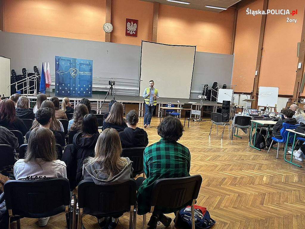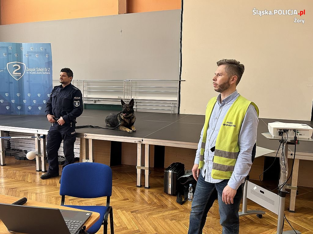 Z inicjatywy żorskiej Policji i Zespołu Szkół nr 2 im. ks. prof. Józefa Tischnera w Żorach odbył się dzień poświęcony między innymi kryminalistyce oraz wpływie pasji na realizację służbowych zadań. Zgromadzeni uczniowie dwóch szkół mogli dowiedzieć się, jak wygląda zabezpieczanie miejsc zdarzeń kryminalnych i drogowych, w tym przy użyciu skanera 3D oraz do czego wykorzystywany jest policyjny pies. Na zakończenie spotkania w rozmowie z przedstawicielem Wydziału Doboru i Szkolenia KWP wKatowicach młodzież mogła porozmawiać i dowiedzieć się jakie warunki należy spełnić, aby móc służyć w Policji.