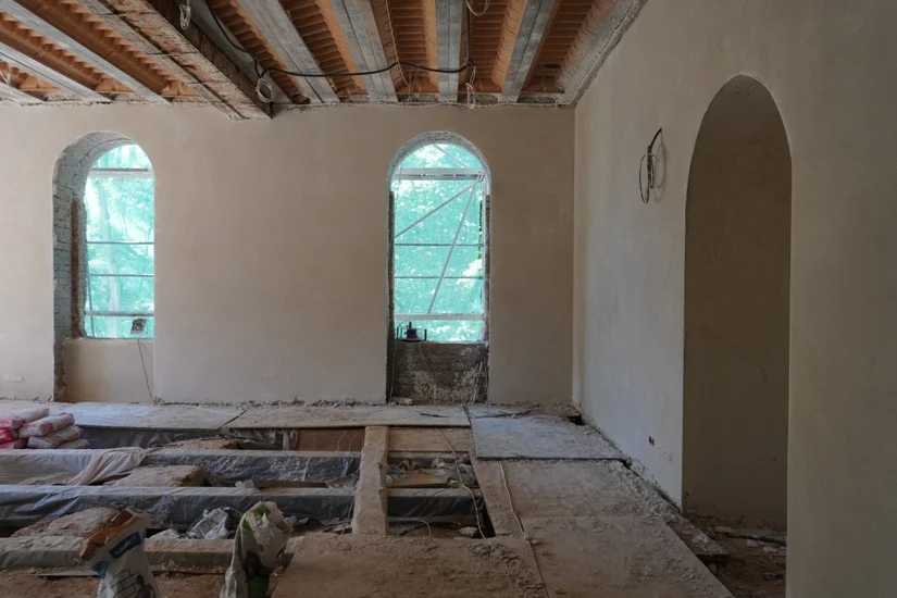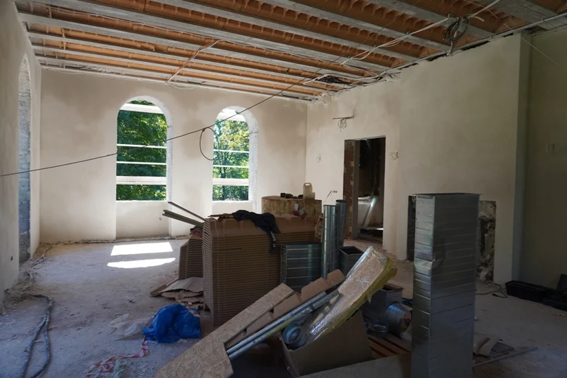Zakończono już wymianę więźby dachowej, obecnie trwają prace związane z pokryciem dachu dachówką ceramiczną, montowane są rynny i rozdrabniacze śniegu. Wykonywane są prace montażowe dla umożliwienia poszerzenia przejścia w kierunku windy dla osób z niepełnosprawnościami. Trwa montaż instalacji sanitarnej i centralnego ogrzewania, instalacji wentylacji oraz klimatyzacji, a także prace montażowe instalacji elektrycznej i niskoprądowej.