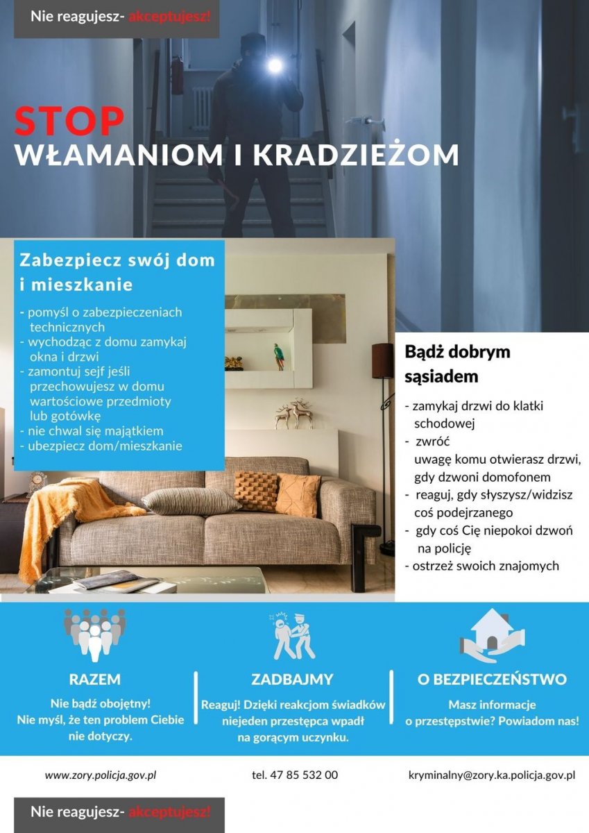 Choć w związku z nasileniem się tego typu przestępczości zostały zlecone dodatkowe zadania, a w rejony zagrożone włamaniami wysyłane są dodatkowe patrole, to pamiętajmy, że nie ma pewności, że przestępcy nie pojawią się w innym miejscu, bądź nie zmienią sposobu działania.