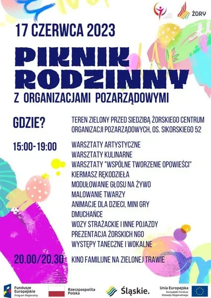 Żorskie Centrum Organizacji Pozarządowych zaprasza na „Piknik rodzinny z Organizacjami Pozarządowymi”, który odbędzie się 17 czerwca przy alei Otto Sterna obok siedziby ŻCOP.