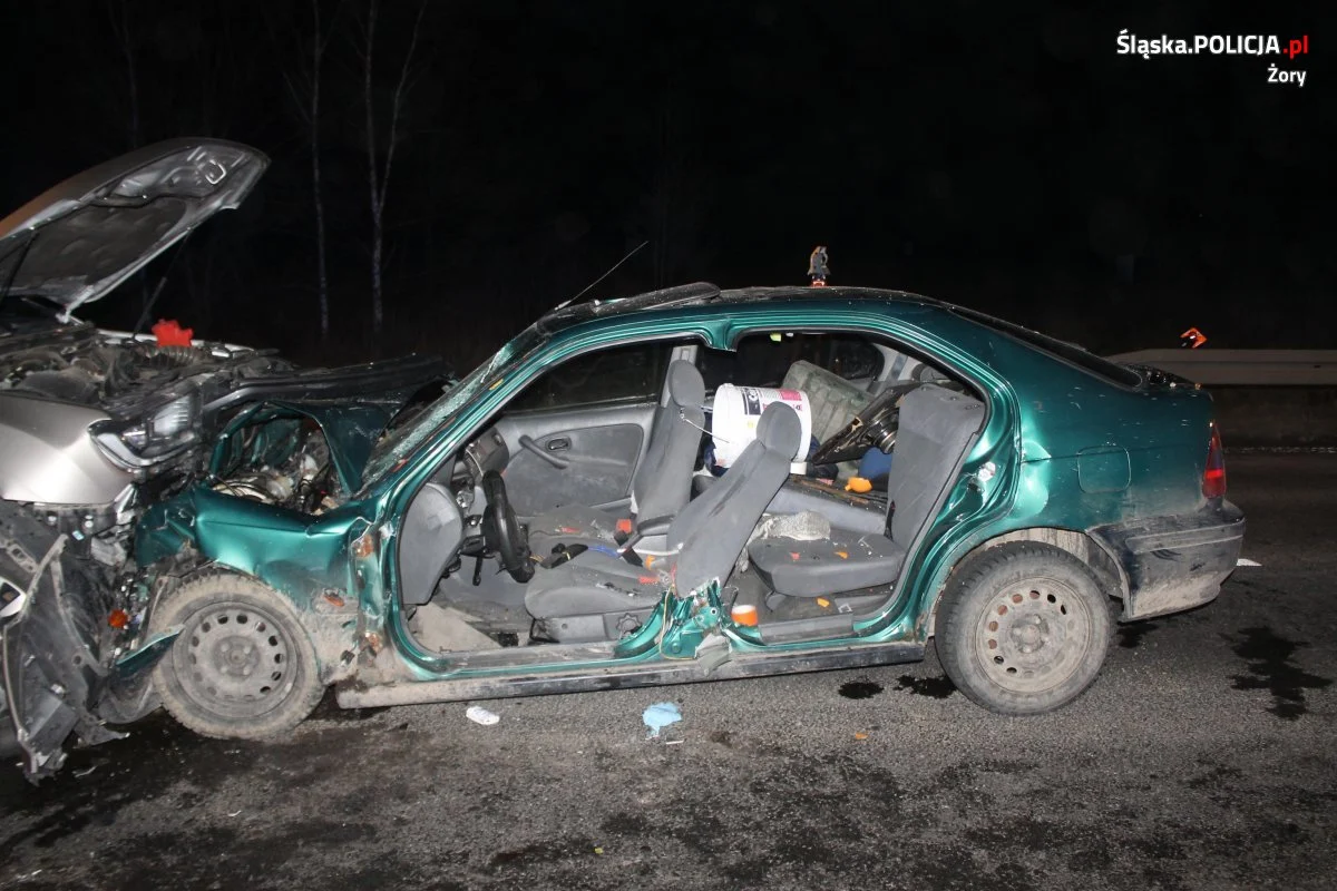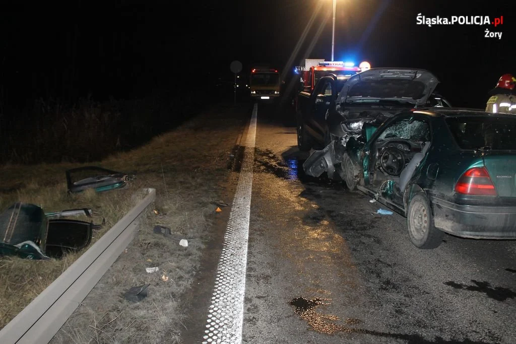 W poniedziałek 3 stycznia po godzinie 16:00 na obwodnicy miasta Żory doszło do zdarzenia drogowego z udziałem dwóch samochodów osobowych. Ze wstępnych ustaleń wynika, iż 44-letni mieszkaniec powiatu gliwickiego, kierujący samochodem Honda Civic z nieustalonych przyczyn zjechał na przeciwny pas ruchu i zderzył się czołowo z prawidłowo jadącym Fordem, którym poruszał się 26-letni mieszkaniec Holandii oraz jego 31-letni pasażer.