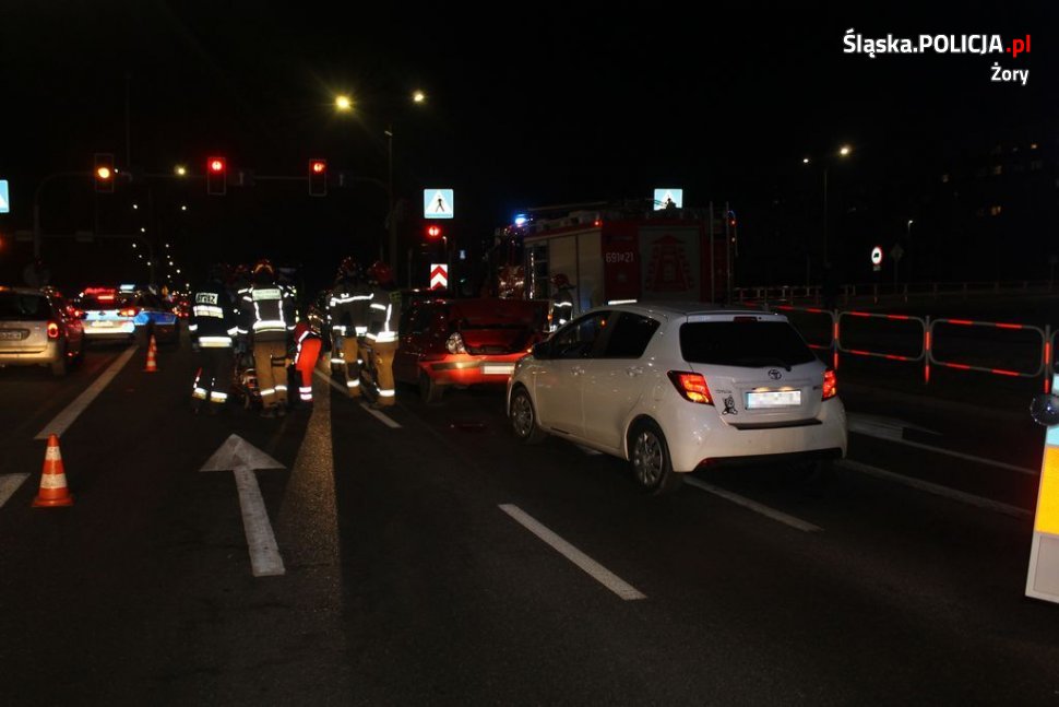 Do zdarzenia doszło wczoraj około godz. 18.30 na Alei Zjednoczonej Europy. Jak wstępnie ustalili policjanci, 76-letni mieszkaniec Żor kierując toyotą nie zauważył, że jadące przed nim samochody zatrzymują się na światłach i najechał na jeden z nich, a ten z kolei uderzył w następny stojący przed nim.