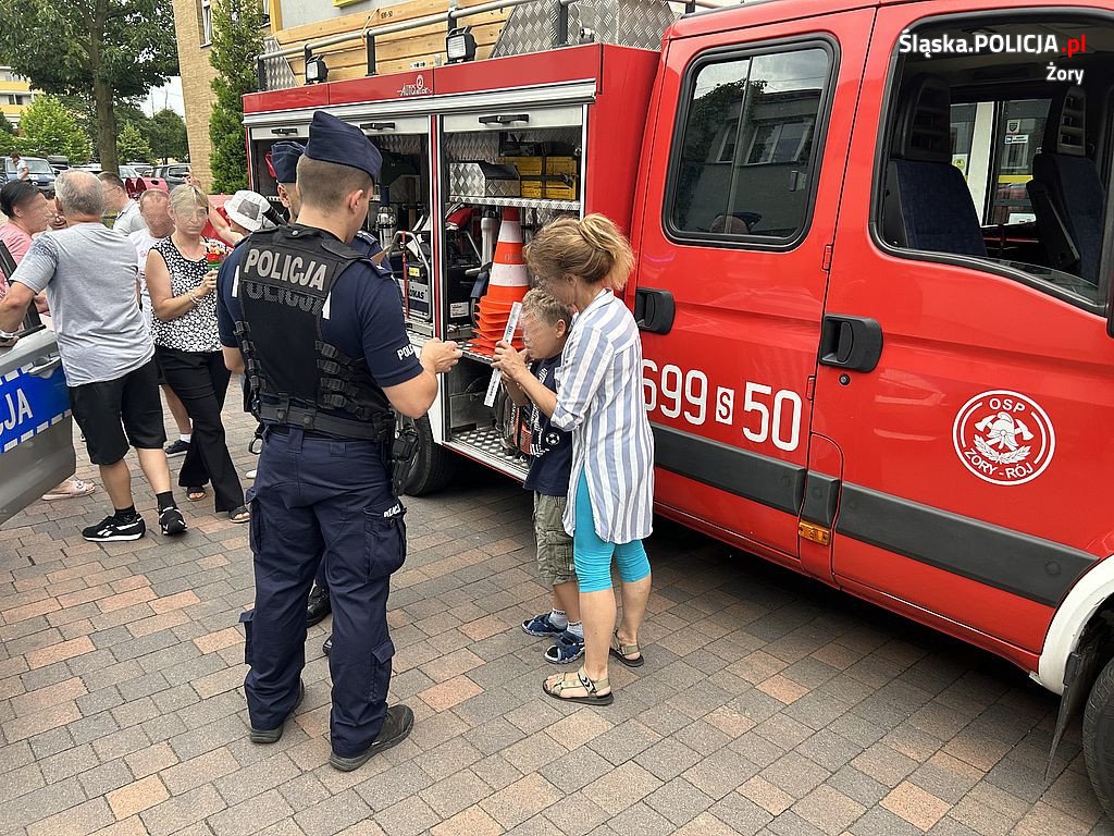 W tym dniu nie zabrakło też mundurowych, którzy na miejsce przybyli wraz z pluszowym przedstawicielem Śląskiej Policji – „Sznupkiem”. Policjanci oraz strażacy z Komendy Miejskiej Państwowej Straży Pożarnej w Żorach wspólnie przygotowali szereg atrakcji nie tylko dla najmłodszych. Spotkanie to było też okazją do rozmowy o prawach człowieka, prawach osób niepełnosprawnych, a także respektowania godności ludzkiej. Mundurowi promowali bezpieczeństwo, rozdawali m.in. odblaskowe elementy, które wpływają na widoczność niechronionych uczestników ruchu drogowego po zmierzchu.