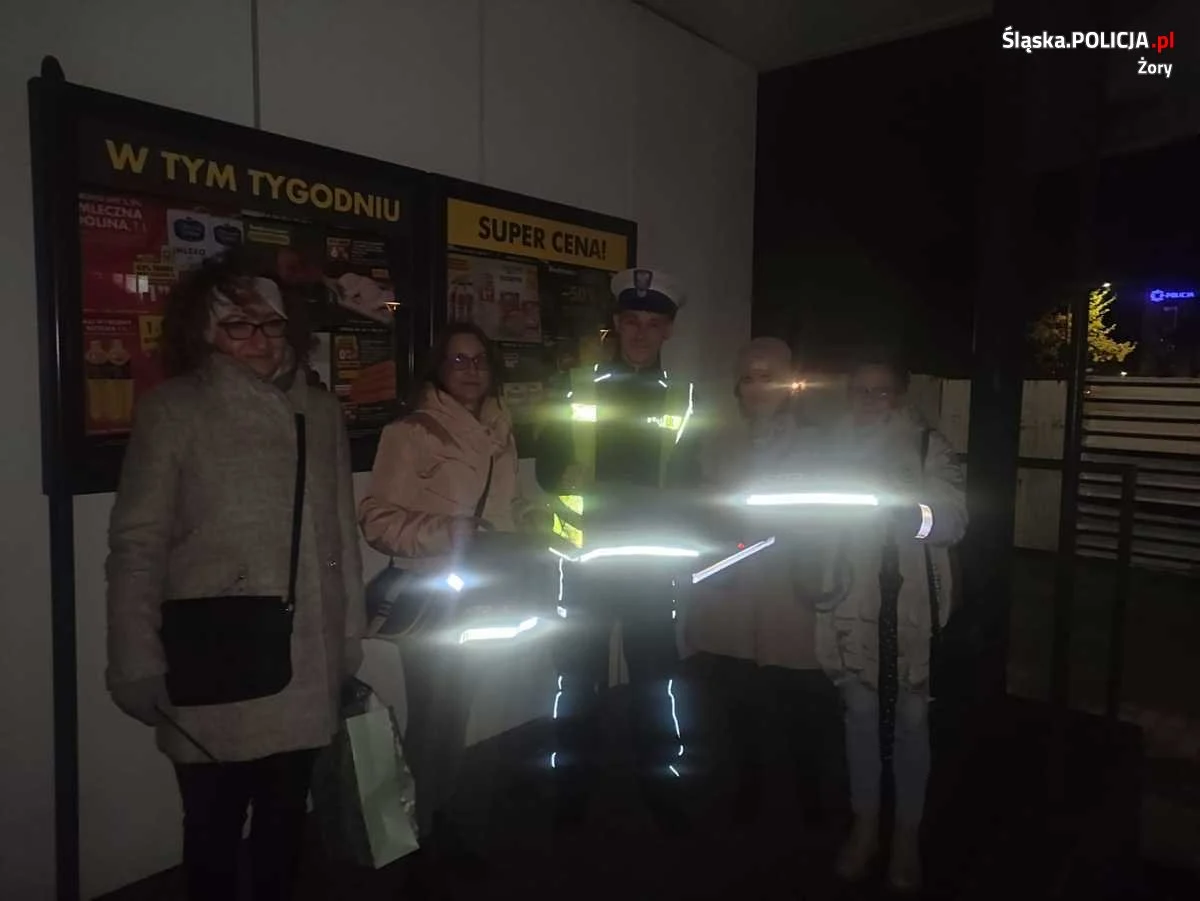 Pamiętajmy, że to my samy mamy bezpośredni wpływ na bezpieczeństwo na drodze, a zrozumienie i szacunek użytkowników jest do niego kluczem. O tym właśnie przypominali podczas niedzielnej akcji żorscy mundurowi, w której trakcie rozmawiali z mieszkańcami i rozdawali odblaskowe elementy, dzięki którym niechroniony uczestnik ruchu drogowego staje się szybciej widoczny dla kierujących samochodami. Policjanci zwracali uwagę także na właściwe i sprawne oświetlenie pojazdów. W okresie jesiennym, kiedy wcześnie zapada zmrok i pogarszają się warunki atmosferyczne, sprawne, prawidłowo wyregulowane światła nabierają szczególnego znaczenia. Między innymi pozwalają kierowcy wcześniej dostrzec przeszkodę znajdującą się na drodze czy też pieszego poruszającego się jezdnią lub poboczem.