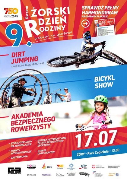 Tegoroczna, 9. edycja Żorskiego Dnia Rodziny będzie połączeniem rodzinnych atrakcji i ekstremalnego show. W niedzielę, 17 lipca czeka nas cały dzień doskonałej zabawy w sportowym wydaniu! Tematycznie tegoroczny Dzień Rodziny będzie można śmiało nazwać „świętem roweru”, bo to właśnie rower w różnych odsłonach będzie się pojawiał w programie imprezy. Zobaczymy miedzy innymi zabytkowe bicykle i historyczne rowery. Będzie też freestyle oraz edukacyjna podróż w czasie podczas zabawnych spektakli. Oczywiście, każdy będzie mógł także spróbować swoich sił i wsiąść na ogromne bicykle czy stare rowery. Pojawi się także Akademia Bezpiecznego Rowerzysty, która w ramach współpracy z Ministerstwem Sportu i Turystyki będzie szkoliła rowerzystów z technik jazdy rowerem. Będzie tor szkoleniowy, rowery, kaski i oczywiście instruktorzy!
