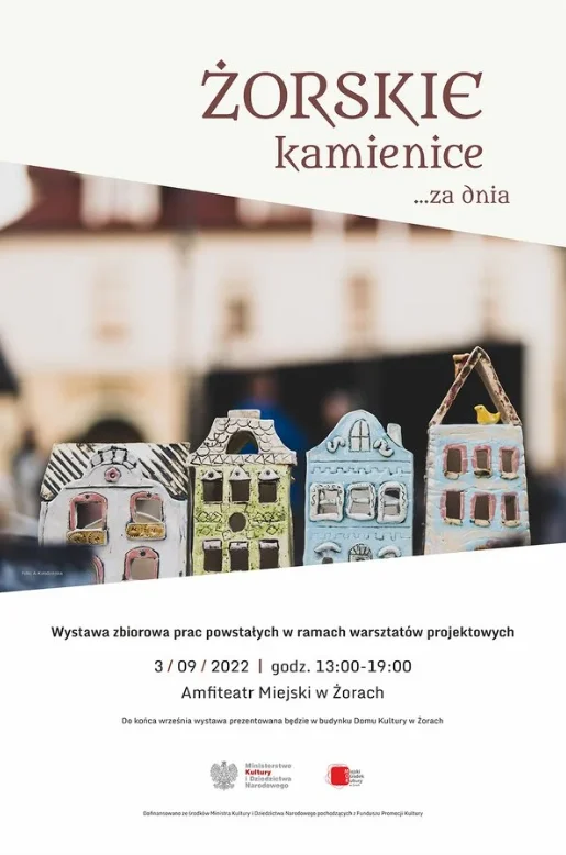 Po ekspozycji w Amfiteatrze Miejskim wystawa „Żorskie kamienice za dnia” przeniesiona zostanie do budynku Domu Kultury. Będzie można ją oglądać do końca września. W jednym miejscu zebrane zostaną wszystkie rezultaty działań z zakresu sztuk wizualnych i manualnych, których inspiracją był krajobraz żorskiej zabudowy.