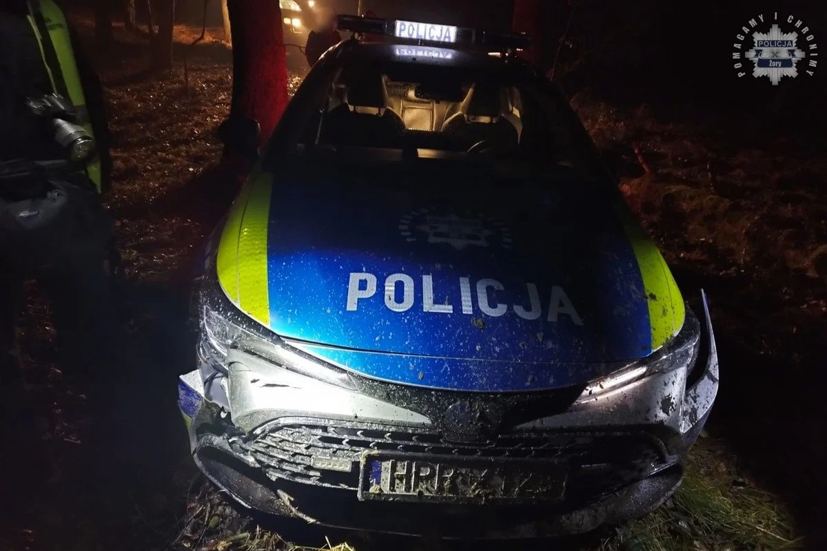 Żory: 39-latek uciekając przed kontrolą drogową samochodem ścinał drzewa