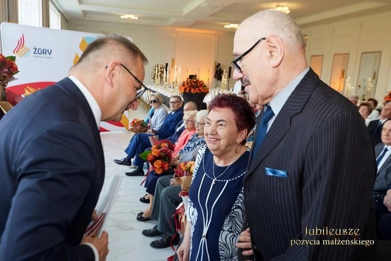 Prezydent Miasta Żory Waldemar Socha złożył parom życzenia zdrowia, pogody ducha, uśmiechu na co dzień oraz wszelkiej pomyślności.
