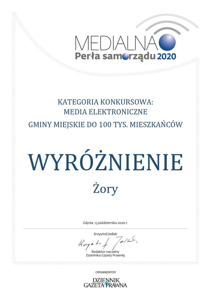 Gmina Miejska Żory znalazła się w zaszczytnym gronie wyróżnionych w rankingu Medialne Perły Samorządu. Konkurs organizowany był przez „Dziennik Gazeta Prawna” oraz miasto Gdynia.