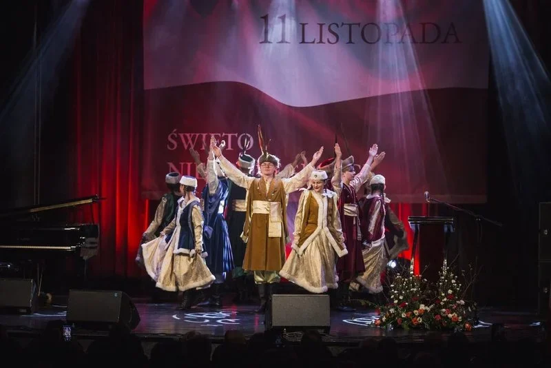 - Zespoły oraz uczniowe przyodziani byli w stroje ludowe czy barwy biało-czerwone. Obecni na akademii goście mogli wysłuchać m.in utworu „Tacy sami, jak my”, czyli tzw. poloneza katyńskiego czy podziwiać wykonanie polskich tanców regionalnych.