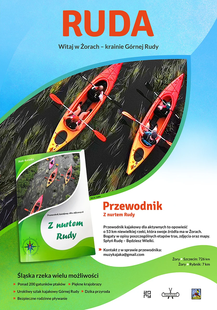 Stworzony przez prawdziwego pasjonata kajakarstwa przewodnik pn. „Z nurtem Rudy” jest bardzo przydatnym narzędziem do organizacji weekendowych wypraw po rzece Rudzie. To pierwsza publikacja, która całościowo opisuje Rudę – od jej źródlisk w okolicach Alei Jana Pawła II w Żorach, aż do ujścia do Odry, we wsi Turze w gminie Kuźnia Raciborska.