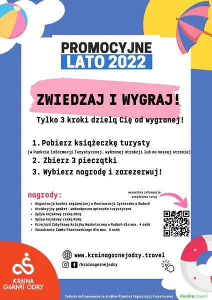 Wystartowała akcja pn. „Promocyjne Lato 2022 w Krainie Górnej Odry”, skierowana do turystów planujących wypoczynek wakacyjny w naszym regionie. Dzięki akcji będzie można nie tylko lepiej poznać Krainę Górnej Odry i jej atrakcje, ale też zdobyć wspaniałe nagrody!