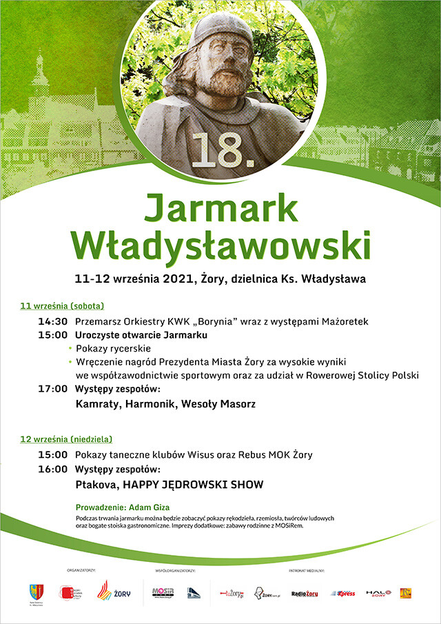 Mamy fantastyczną wiadomość dla mieszkańców Żor! Po długiej pandemicznej przerwie, w drugą sobotę września, rusza XVIII Jarmark Władysławowski. Przed nami dwa dni świetnej zabawy, wypełnione muzyką, tańcem i śpiewem. Jak co roku nie zabraknie też pokazów rycerskich i rodzinnych rozgrywek sportowych. A to wszystko ubogacone straganami z rękodziełem twórców ludowych i punktami z gastronomią. Zapraszamy do uczestnictwa w jedynej takiej w roku imprezie plenerowej.