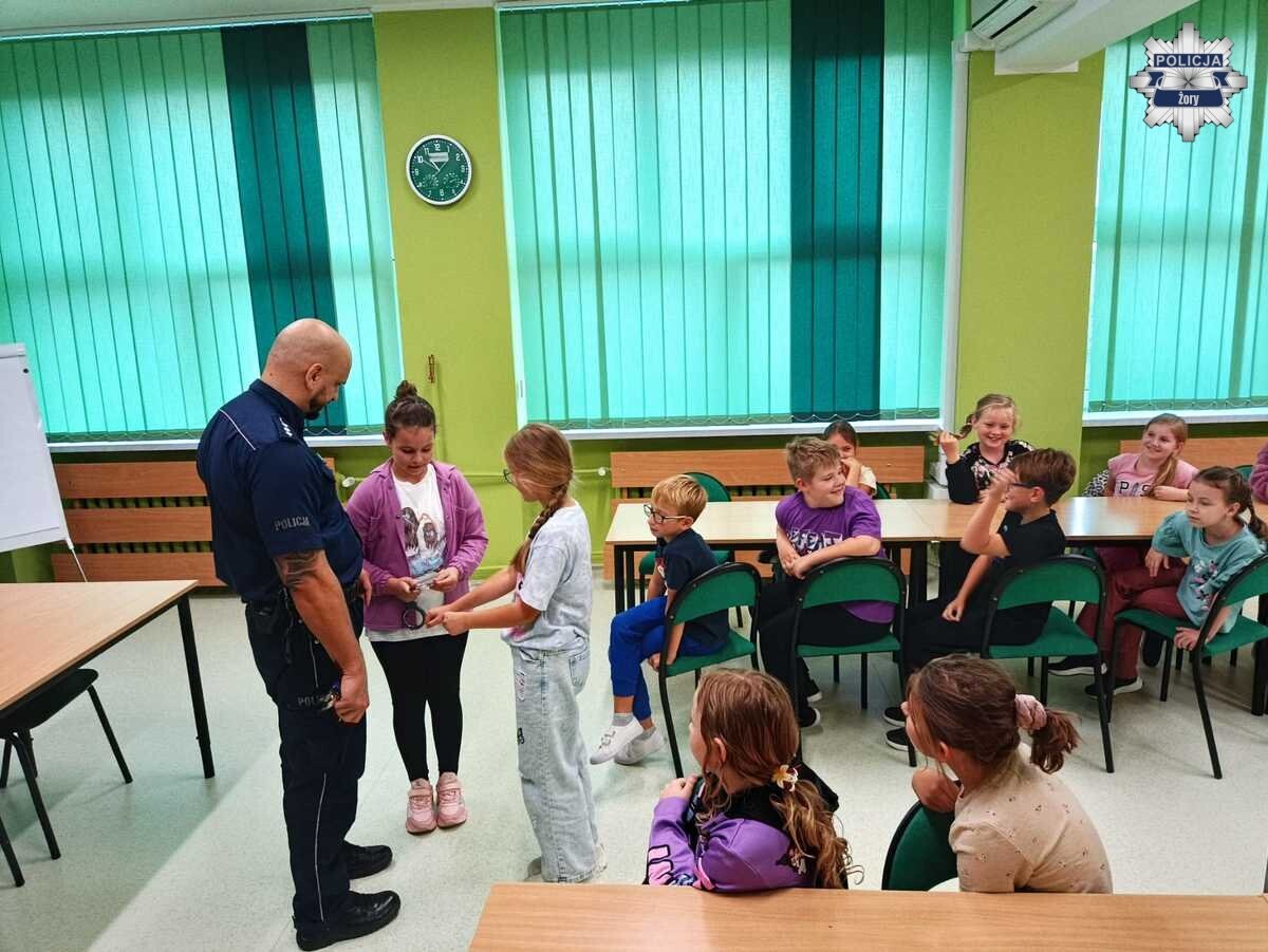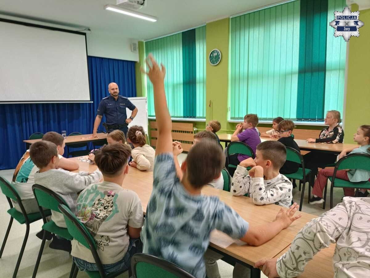 Trzecioklasiści z SP nr 13 w Żorach uczestniczyli w spotkaniu z policjantem w ramach akcji „Bezpieczna droga do szkoły”. Dzieci dowiedziały się, jak dbać o bezpieczeństwo na drodze i poza nią.