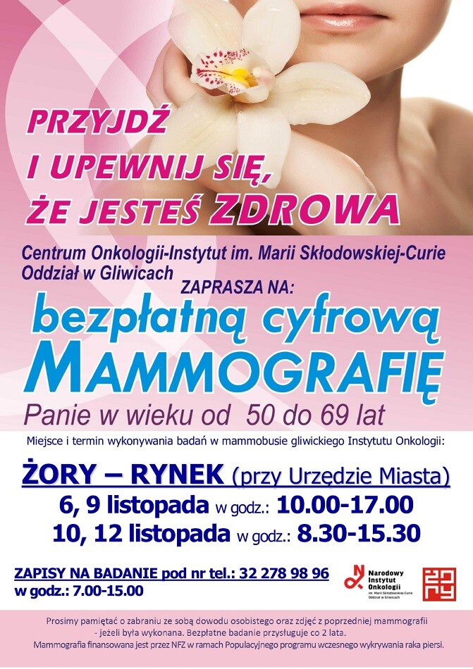 Na żorskim rynku ponownie stanie specjalistyczny mammobus Narodowego Instytutu Onkologii im. M. Skłodowskiej-Curie w Gliwicach. Kobiety w wieku 50-69 lat będą w nim mogły bezpłatnie wykonać cyfrową mammografię.