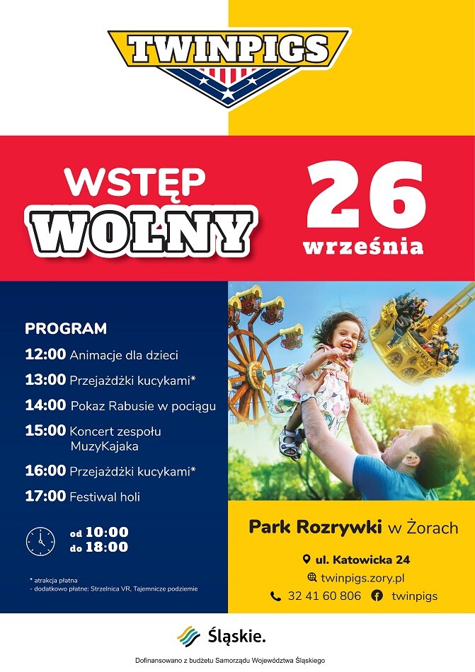 Dzień Otwarty w Twinpigs odbędzie się 26 września, w godzinach 10:00 - 18:00. Park Rozrywki znajduje się w Żorach, przy ul. Katowickiej 24. Wstęp wolny!