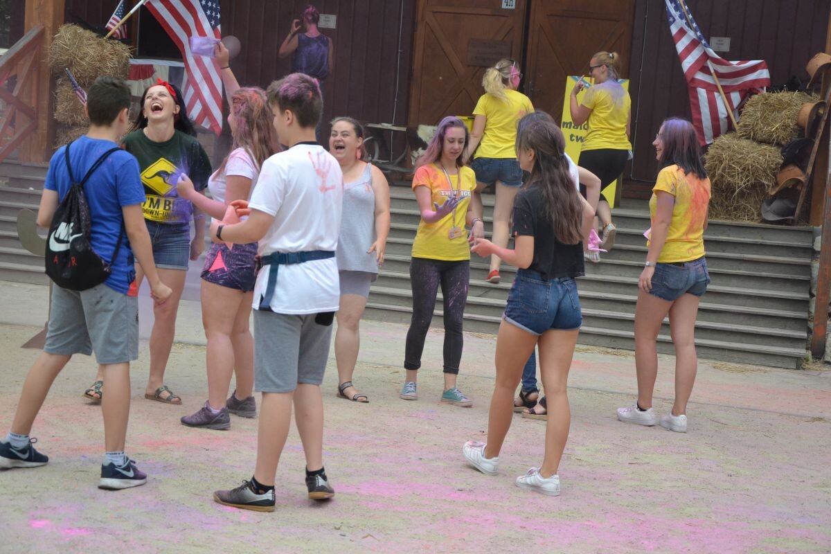 Dzisiaj w żorskim Twinpigs uczniowie świętowali początek wakacji: główna ulica miasteczka pełna była kolorów holi!