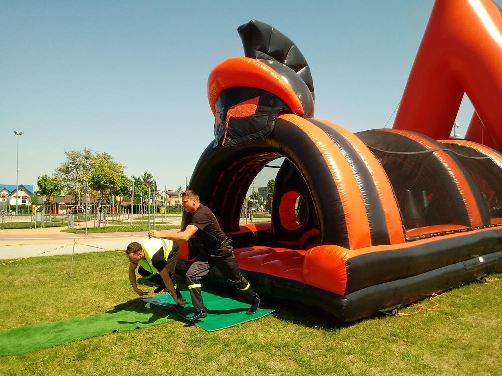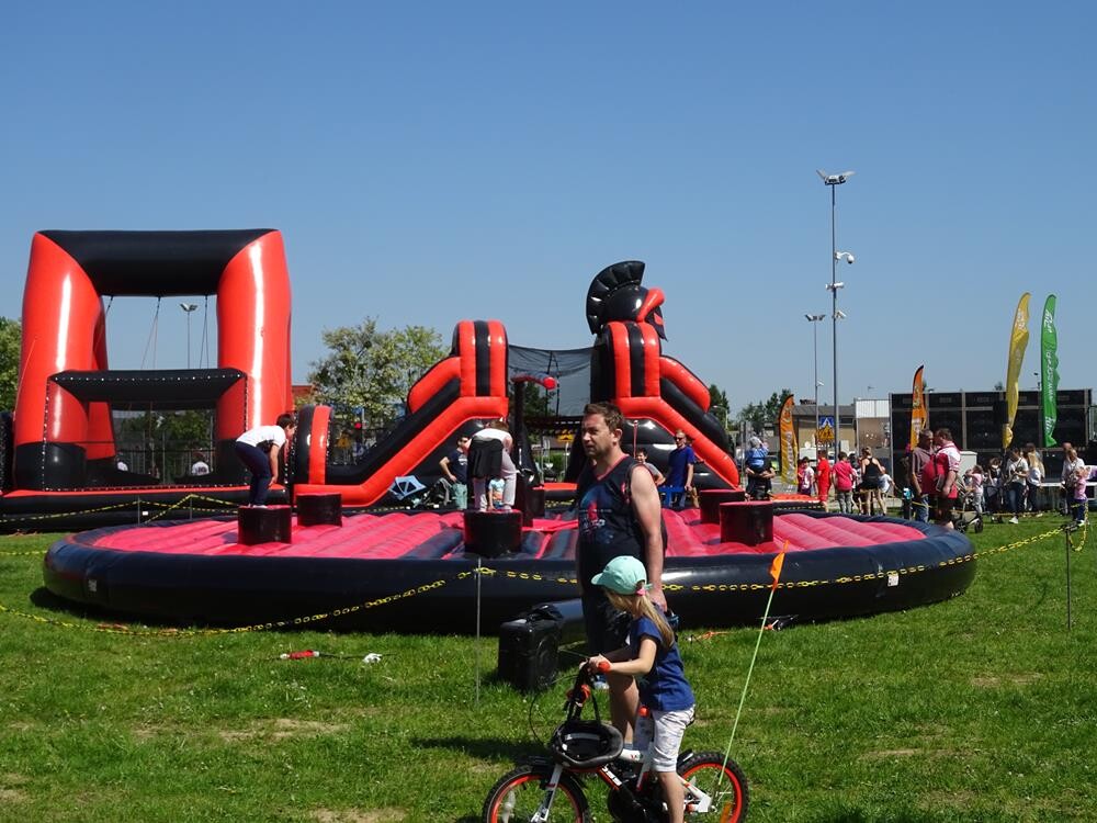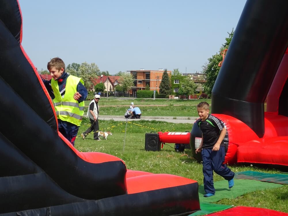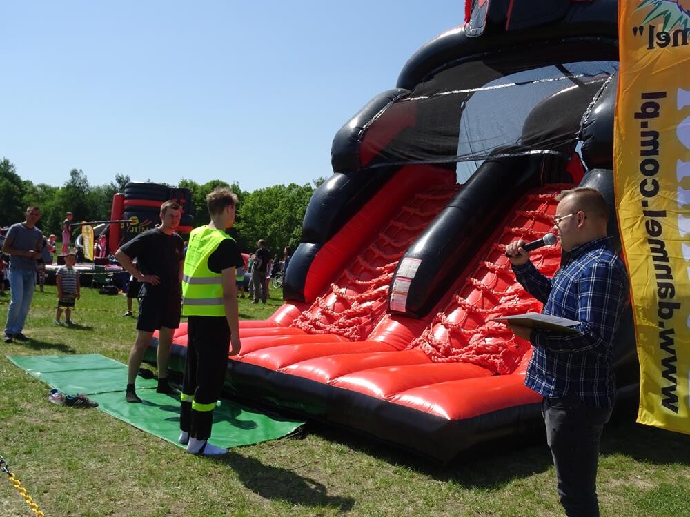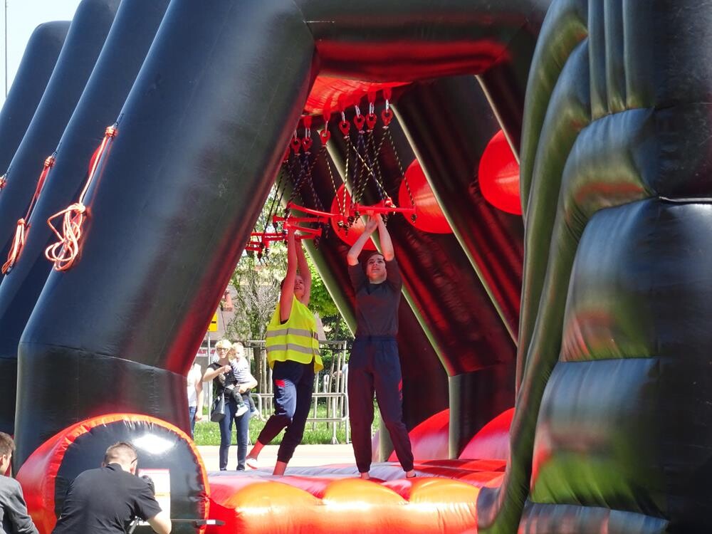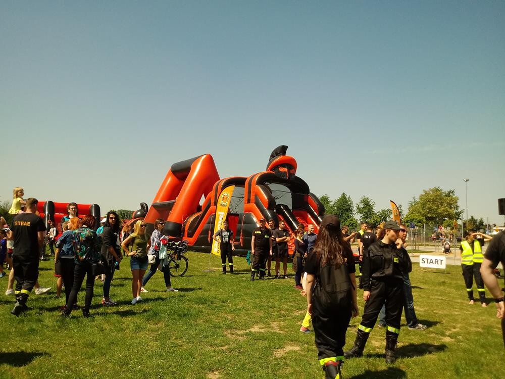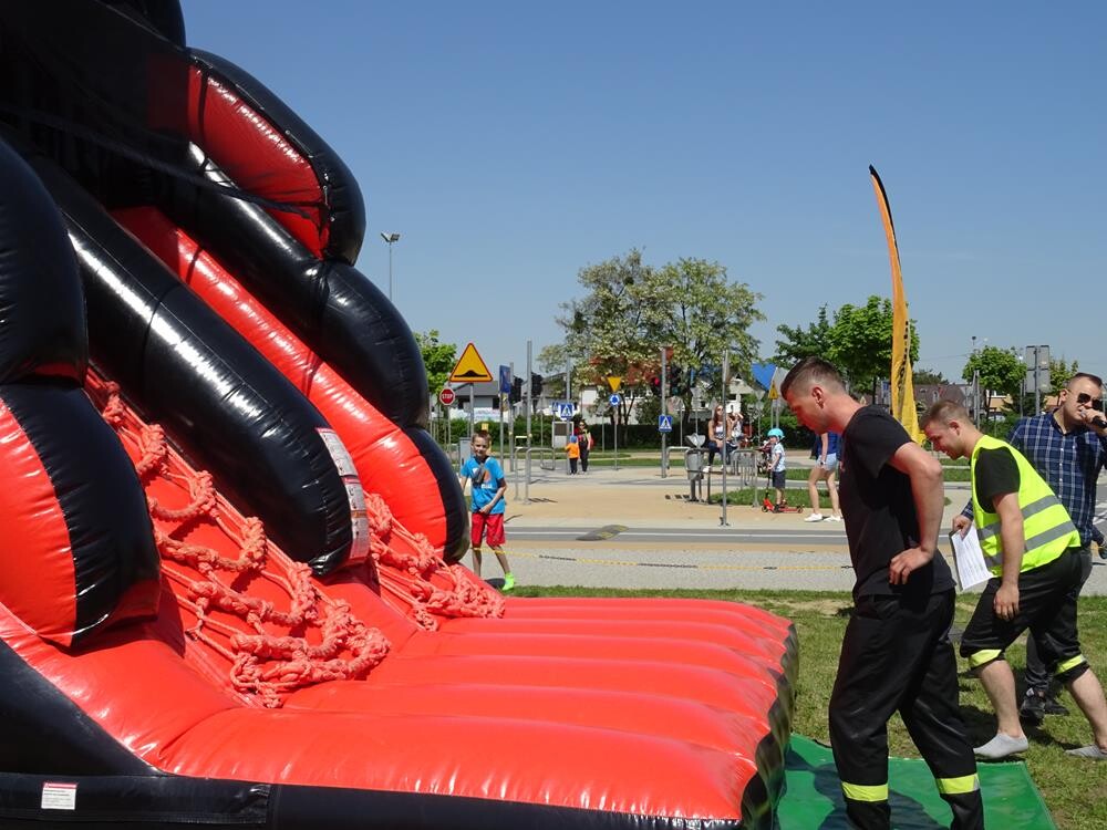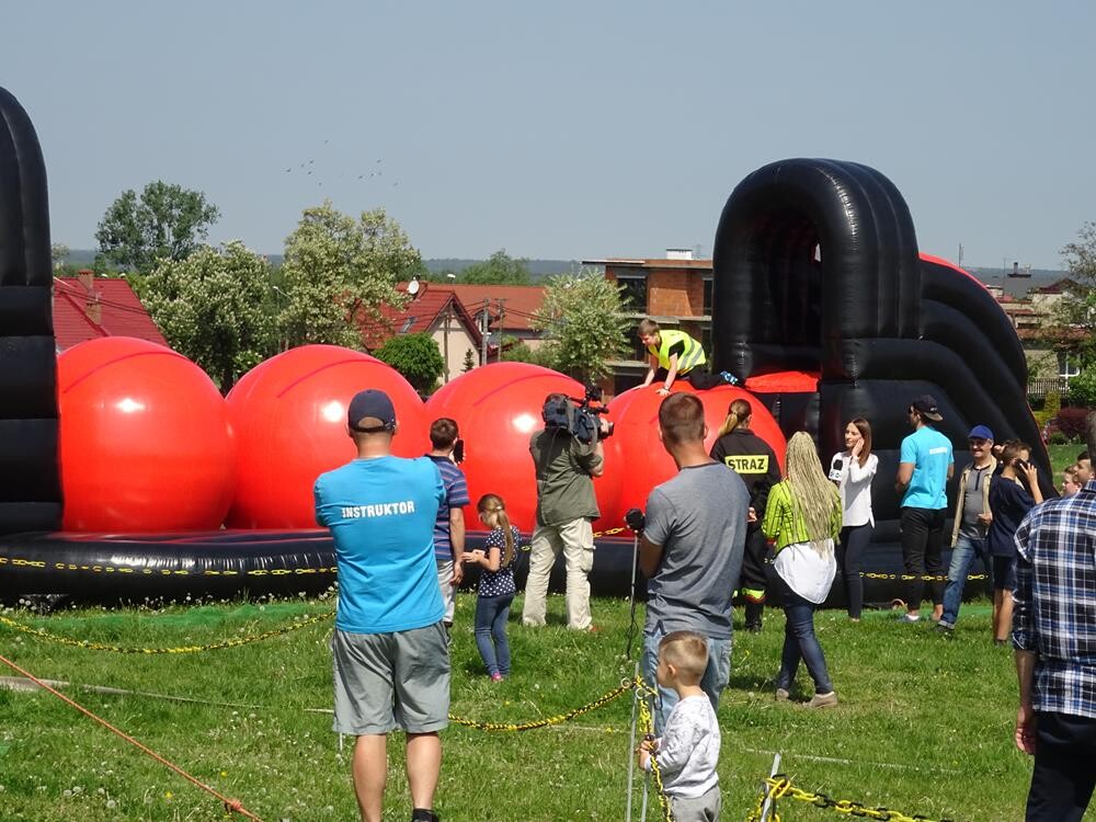 Centralnym punktem festynu była atrakcja – gigantyczny, dmuchany tor przeszkód, nawiązujący do telewizyjnego show „Wipeout”. Jako pierwsza z wyzwaniem zmierzyła się młodzież z OSP Osiny, a następnie strażacy z KMP Straży Pożarnej w Żorach oraz z jednostek Ochotniczej Straży Pożarnej z naszego miasta, którzy podzieleni na drużyny rywalizowali ze sobą pokazując swoją sprawność fizyczną.
