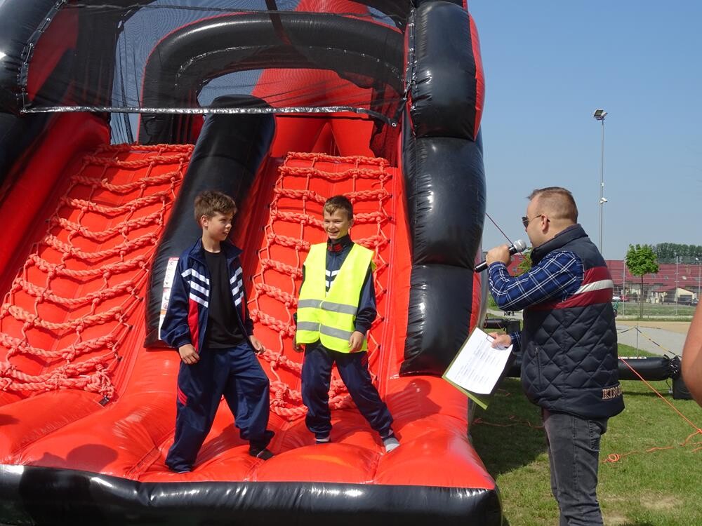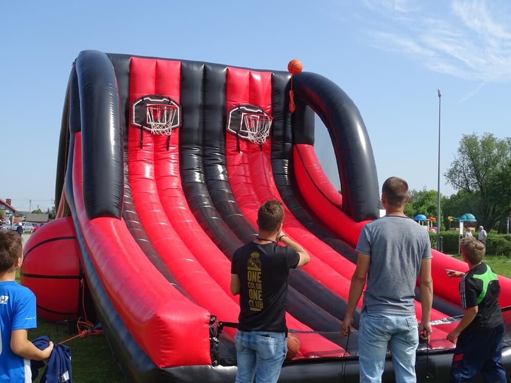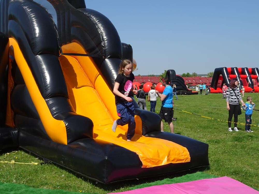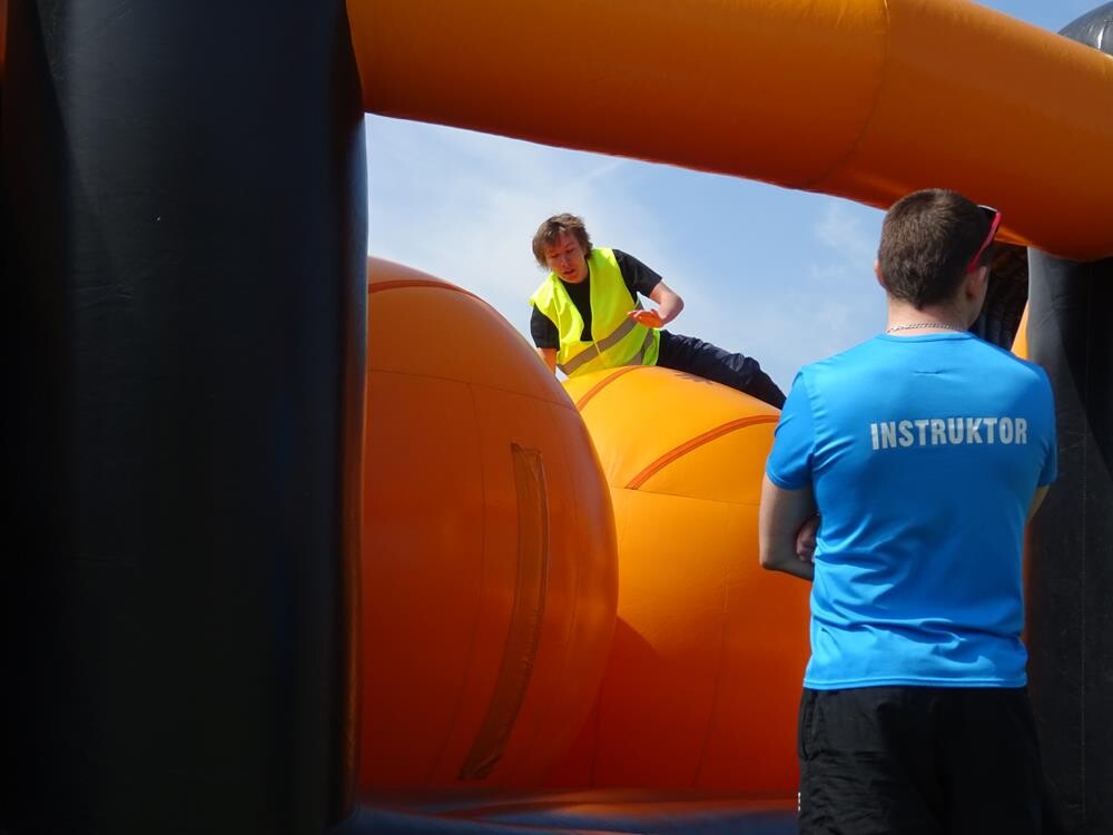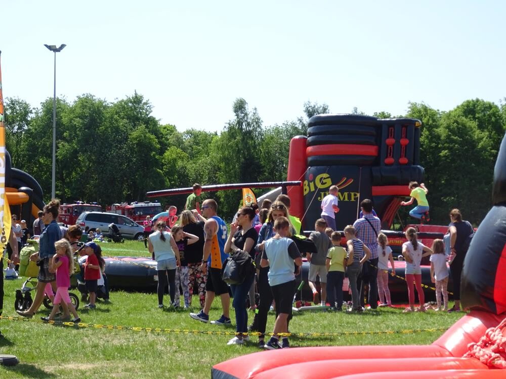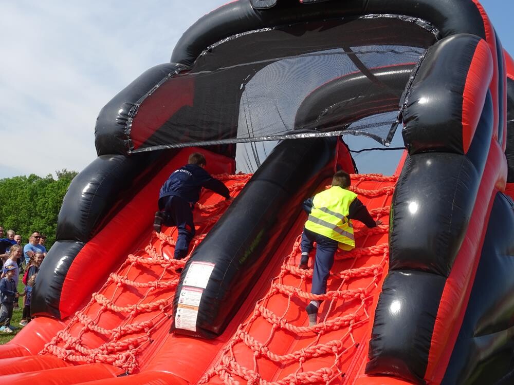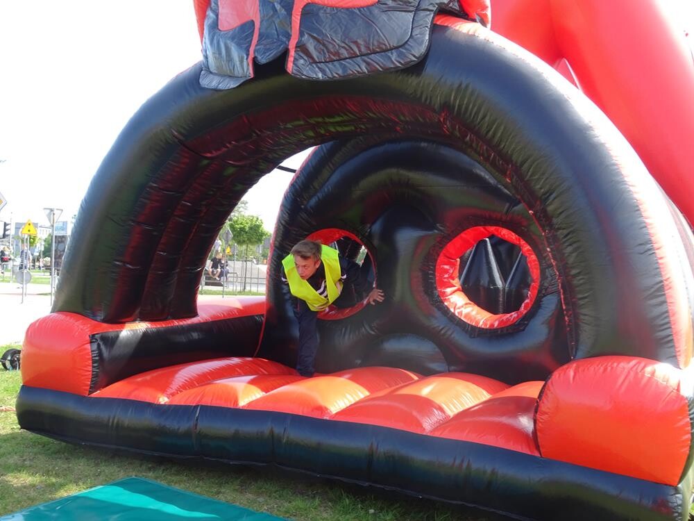 Centralnym punktem festynu była atrakcja – gigantyczny, dmuchany tor przeszkód, nawiązujący do telewizyjnego show „Wipeout”. Jako pierwsza z wyzwaniem zmierzyła się młodzież z OSP Osiny, a następnie strażacy z KMP Straży Pożarnej w Żorach oraz z jednostek Ochotniczej Straży Pożarnej z naszego miasta, którzy podzieleni na drużyny rywalizowali ze sobą pokazując swoją sprawność fizyczną.