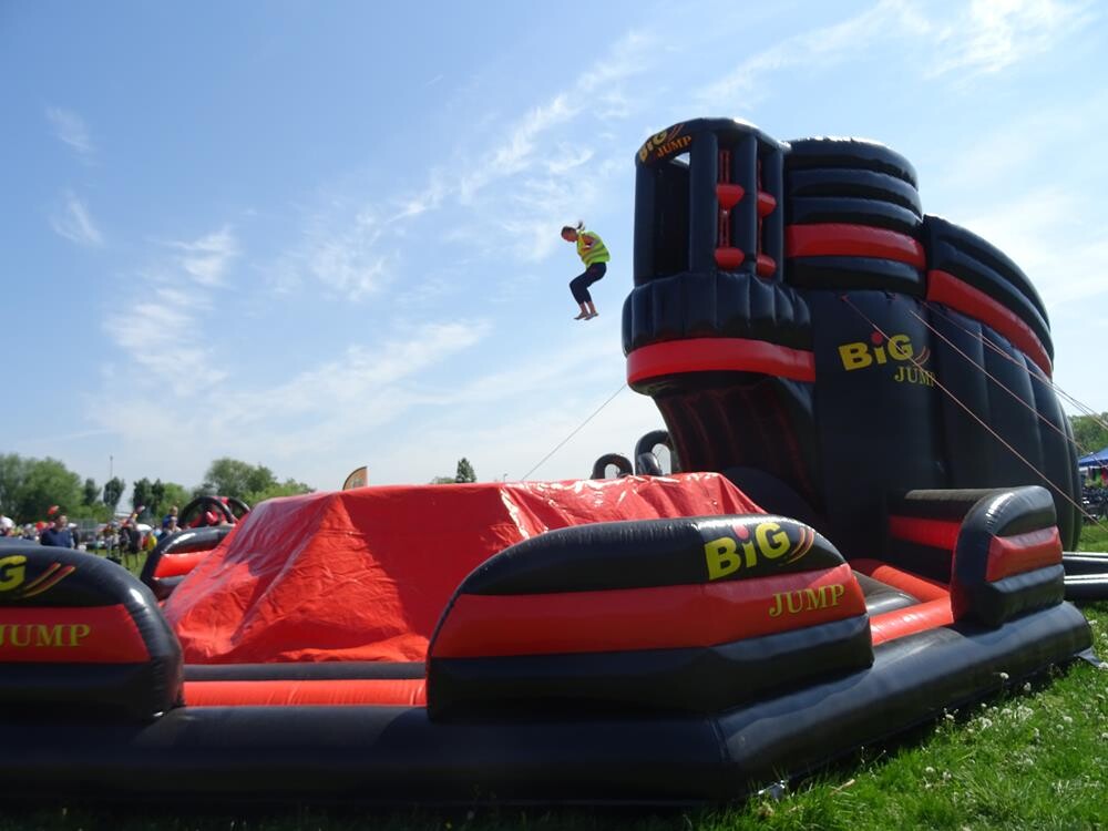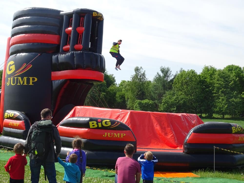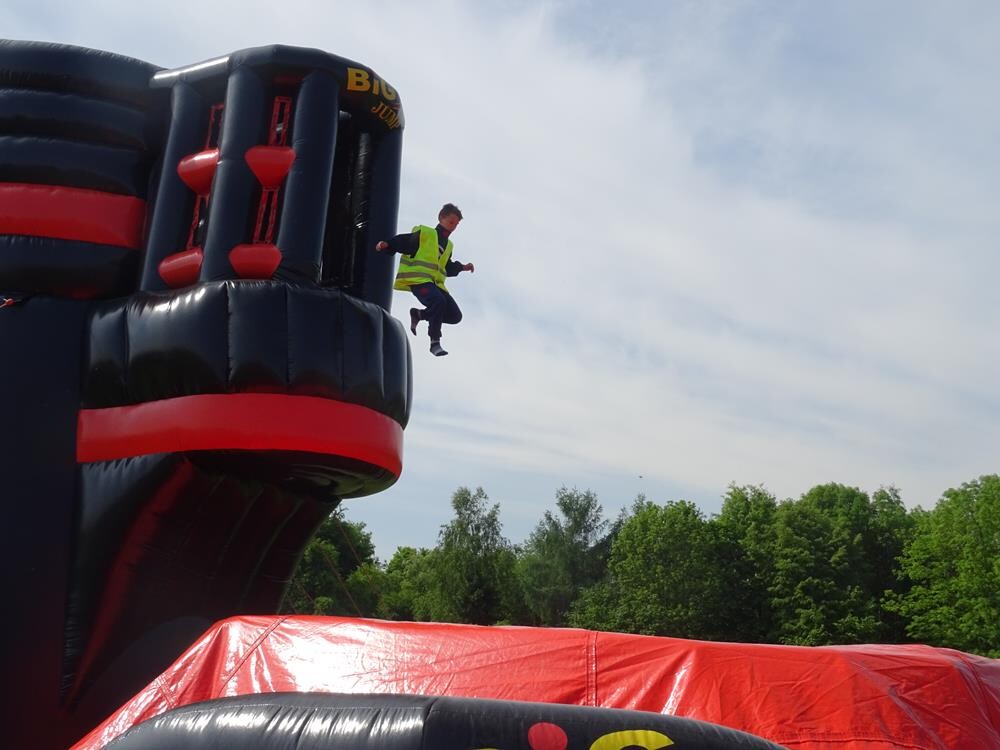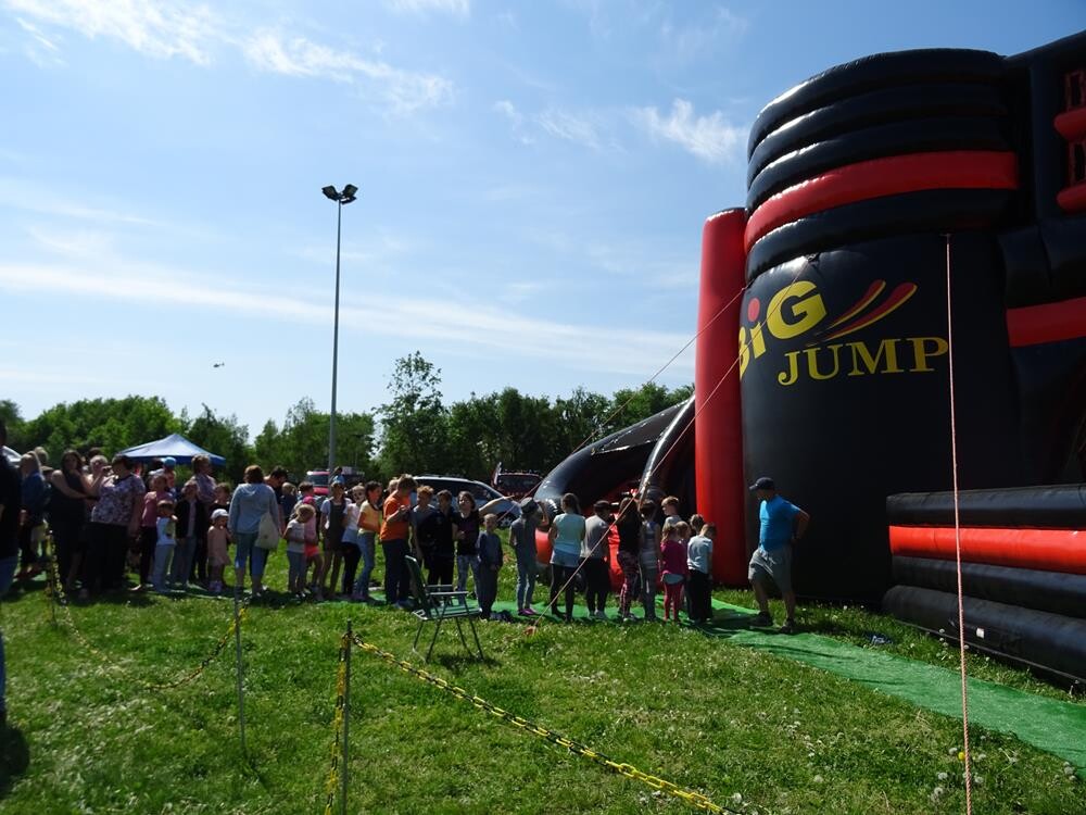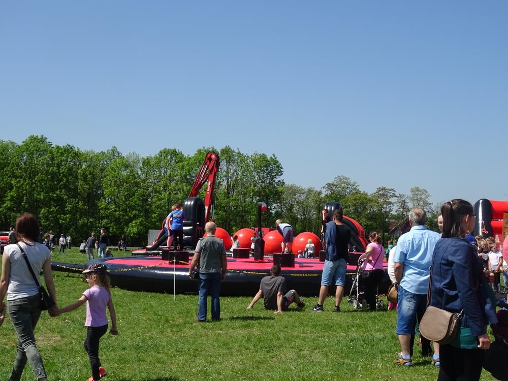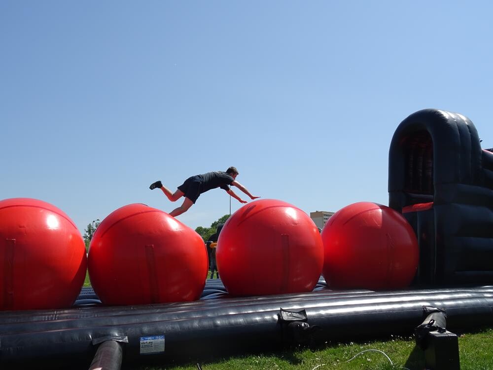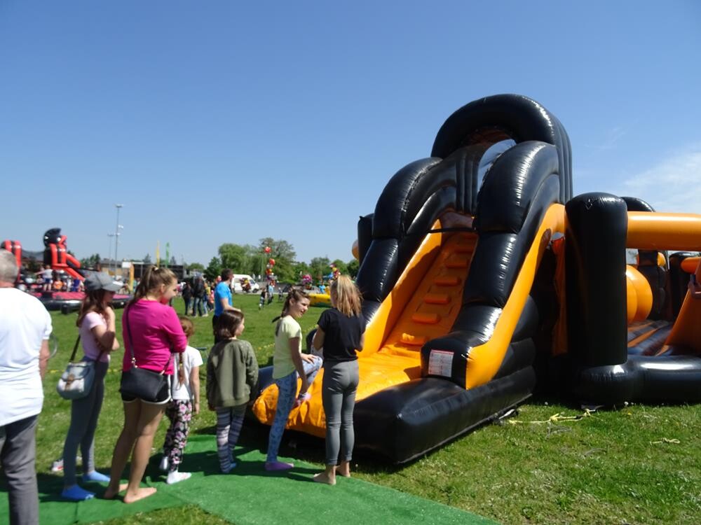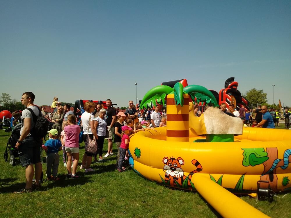 Centralnym punktem festynu była atrakcja – gigantyczny, dmuchany tor przeszkód, nawiązujący do telewizyjnego show „Wipeout”. Jako pierwsza z wyzwaniem zmierzyła się młodzież z OSP Osiny, a następnie strażacy z KMP Straży Pożarnej w Żorach oraz z jednostek Ochotniczej Straży Pożarnej z naszego miasta, którzy podzieleni na drużyny rywalizowali ze sobą pokazując swoją sprawność fizyczną.