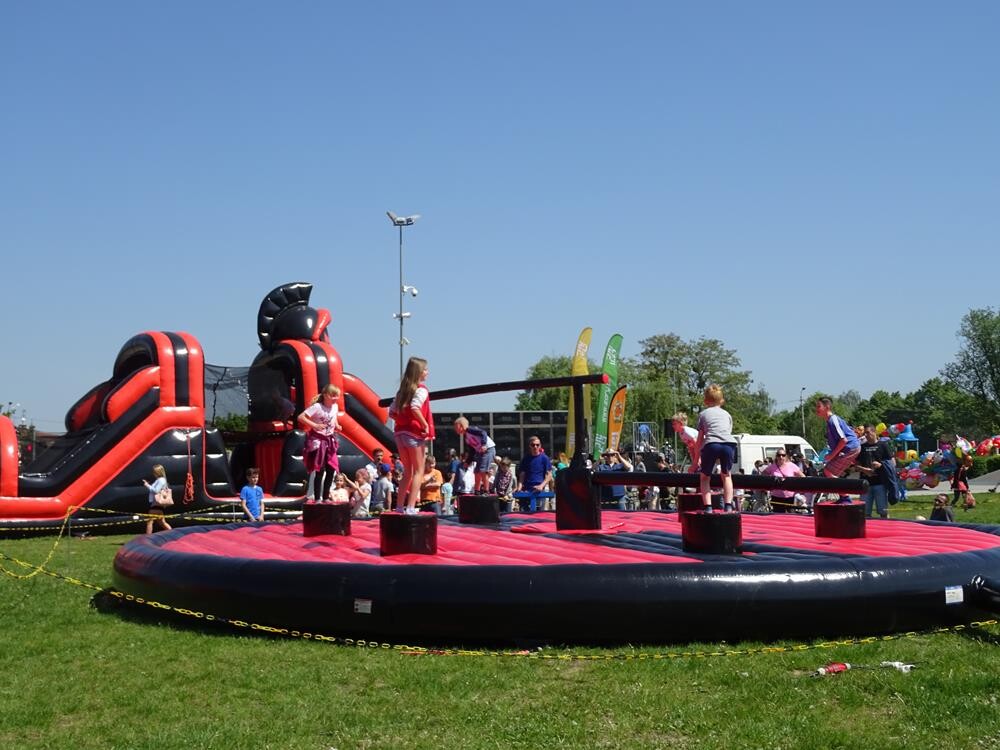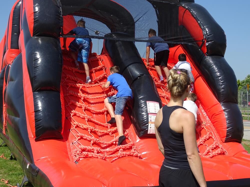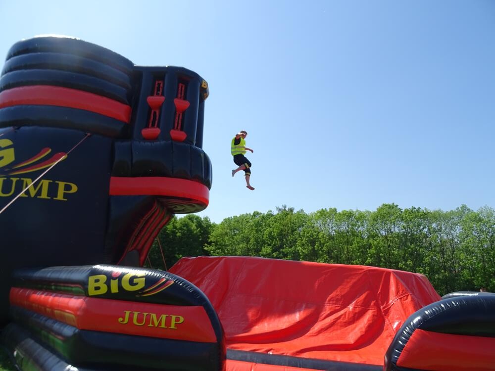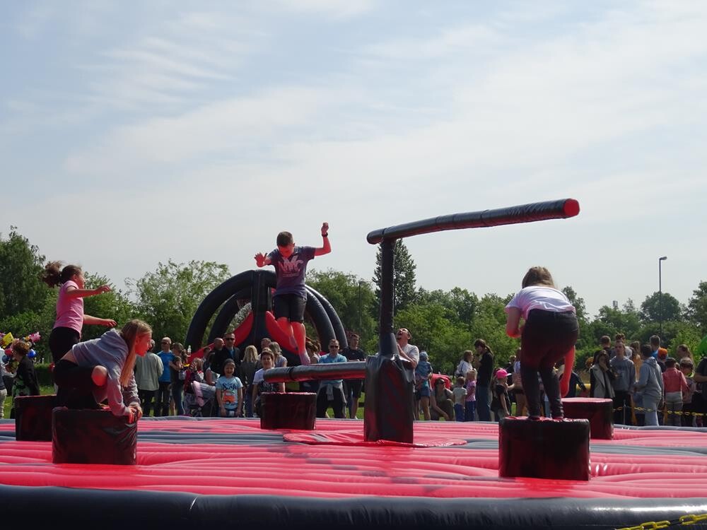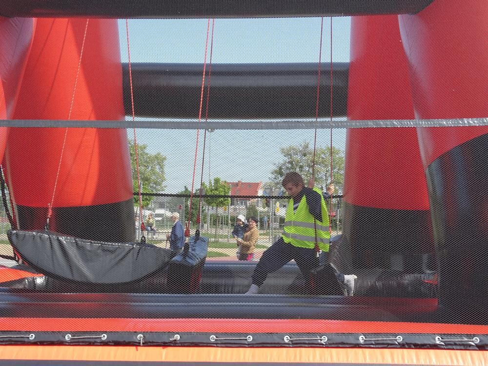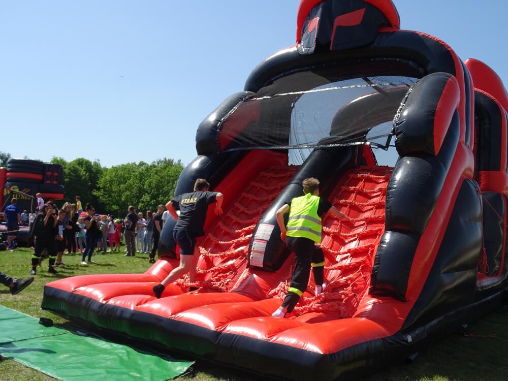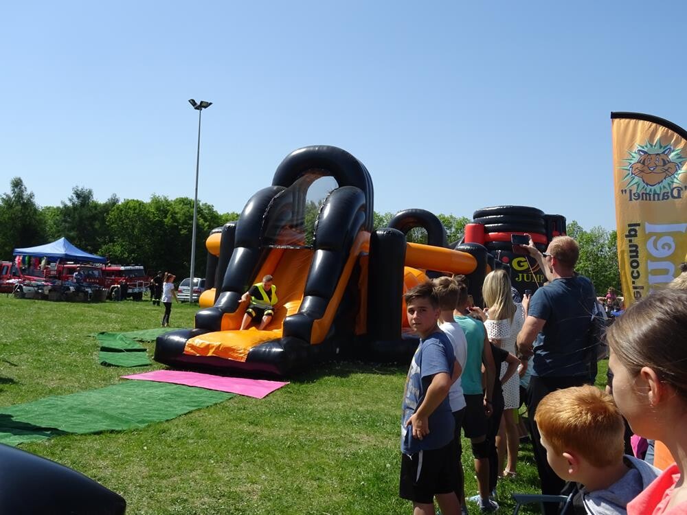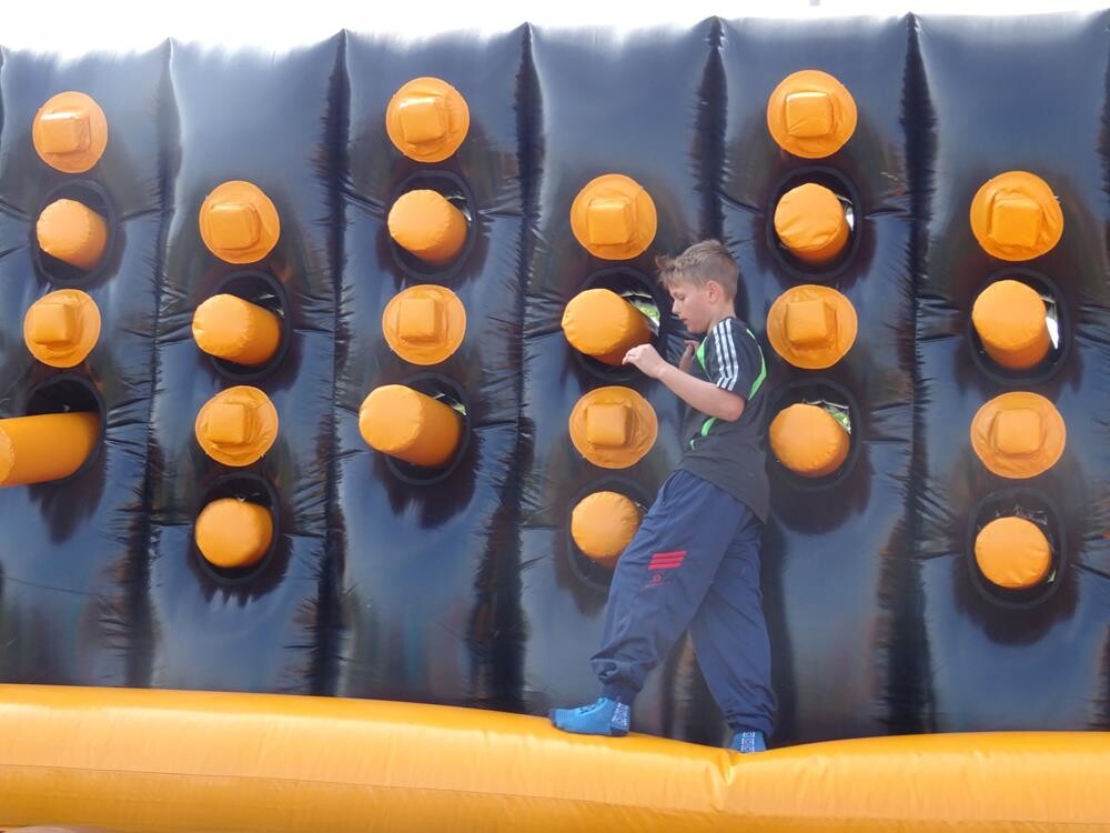 Centralnym punktem festynu była atrakcja – gigantyczny, dmuchany tor przeszkód, nawiązujący do telewizyjnego show „Wipeout”. Jako pierwsza z wyzwaniem zmierzyła się młodzież z OSP Osiny, a następnie strażacy z KMP Straży Pożarnej w Żorach oraz z jednostek Ochotniczej Straży Pożarnej z naszego miasta, którzy podzieleni na drużyny rywalizowali ze sobą pokazując swoją sprawność fizyczną.