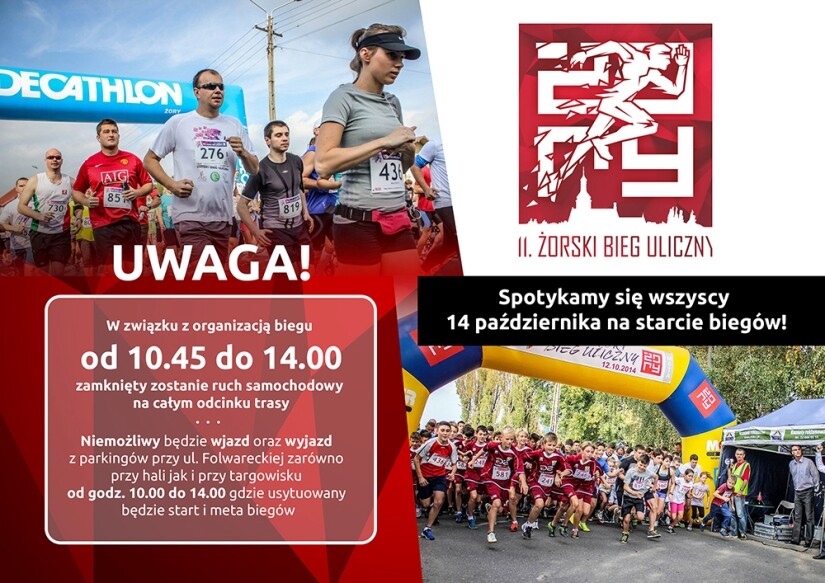 Przed nami wielkie biegowe święto! Już w najbliższą niedzielę setki zawodników ponownie wybiegną na ulice naszego miasta, by wziąć udział w jedenastej edycji Żorskiego Biegu Ulicznego na dystansie 10 kilometrów oraz w „Biegu po zdrowie”. Podczas trwania imprezy kierowcy muszą przygotować się na utrudnienia w ruchu!