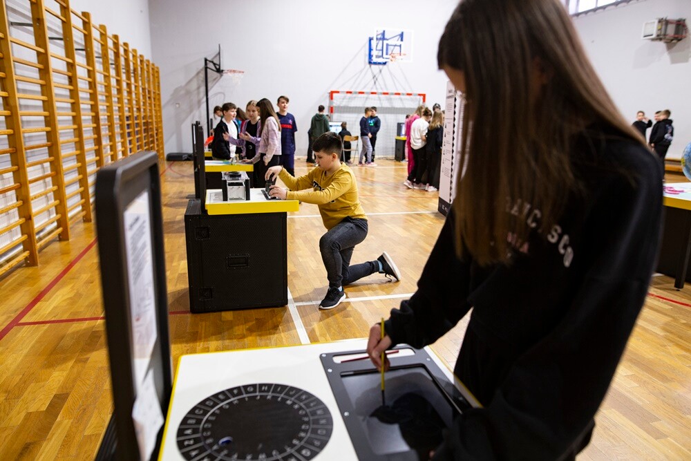 Uczniowie ze Szkoły Podstawowej nr 16 z Oddziałami Integracyjnymi im. Marii Konopnickiej w Żorach przetestują najnowszą mobilną wystawę Centrum Nauki Kopernik, pt. „O matmo!”.