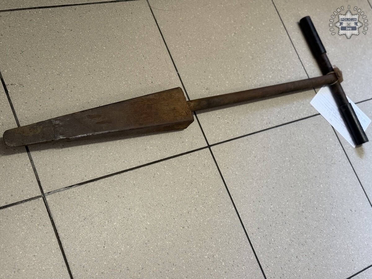 Około 30 minut po pierwszym zdarzeniu, w rejonie ulicy Ogrodniczej, świadkowie zauważyli mężczyznę o podejrzanym zachowaniu. Chodził po posesjach, świecił latarką i sprawdzał drzwi do domów. W dłoni trzymał ciężki, stalowy przedmiot. Na miejsce przyjechał patrol, który próbował wylegitymować mężczyznę. Ten, nie reagując na polecenia, stał się agresywny i zaatakował funkcjonariuszy metalowym kosturem. Dzięki szybkiej reakcji policjantów, mężczyzna został obezwładniony.