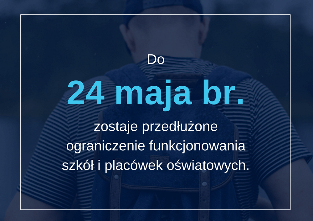 Minister Edukacji Narodowej poinformował, że obecne warunki epidemiczne nie pozwalają na odwieszenie działalności szkół, przedszkoli i żłobków. Dlatego rząd zdecydował o dalszym ograniczeniu działalności tych placówek - do 24 maja. Do tego czasu przedłużone są też ograniczenia prowadzenia działalności dydaktycznej w szkołach wyższych.