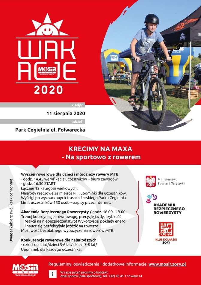 MOSiR Żory zaprasza 11 sierpnia br. na akcję "KRĘCIMY NA MAXA - Na sportowo z rowerem".