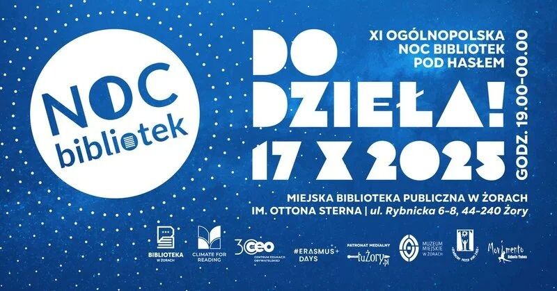 17 października Biblioteka w Żorach zaprasza na XI Ogólnopolską Noc Bibliotek pod hasłem „DO DZIEŁA”. W programie wieczór pełen warsztatów, muzyki, tańca, filmów i atrakcji dla każdego!