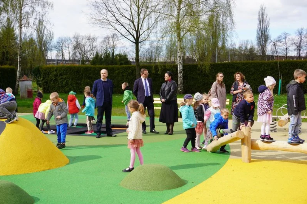 Na terenie placu zabaw pojawiły się także nowe ławki, stojaki na rowery i kosze na śmieci. Zagospodarowany został również teren zielony w sąsiedztwie placu zabaw - posadzono rośliny ozdobne, krzewy i rabaty.