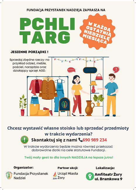 Podczas wydarzenia będzie można przekazać datki na cele statutowe Fundacji Przystanek Nadzieja, która jest organizatorem kiermaszu. Partnerem wydarzenia jest Gmina Miejska Żory. Serdecznie zapraszamy wszystkich zainteresowanych – to idealna okazja, by połączyć przyjemne z pożytecznym!