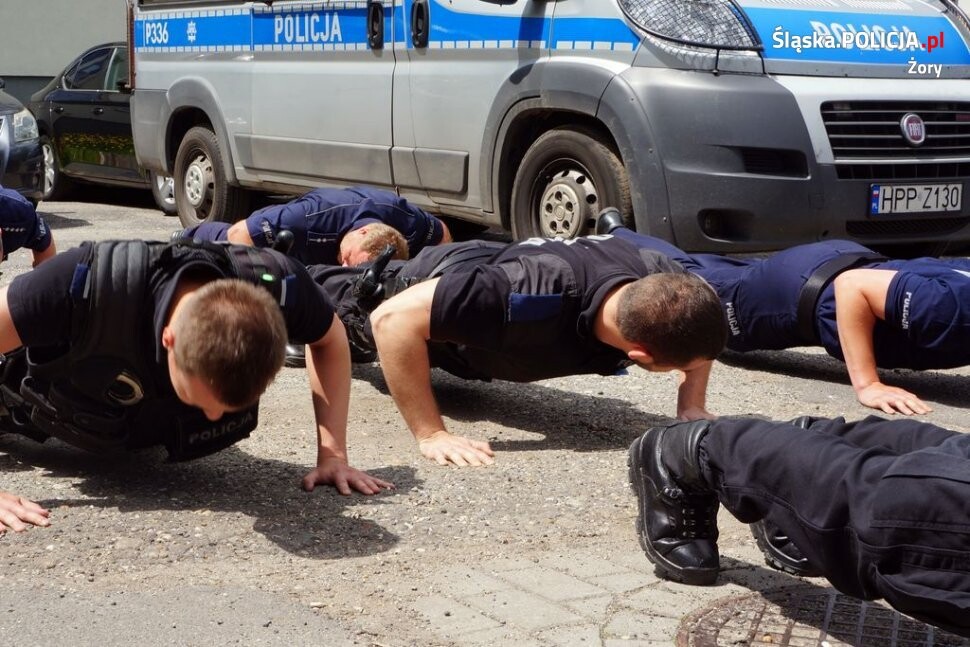 Do wykonania zadania policjantów z Komendy Miejskiej Policji w Żorach nominowali strażacy ochotnicy z miejscowej OSP, którzy przyłączyli do kolejnego wyścigu #GaszynChallenge, tym razem na rzecz kilkumiesięcznej Sandry. Aby wesprzeć charytatywną akcję wystarczyło wykonać 10 pompek i wpłacić minimum 5 zł. na numer konta podany na stronie siepomaga.pl, nagrać filmik, wrzucić na stronę internetową i przedstawić trzy kolejne nominacje.