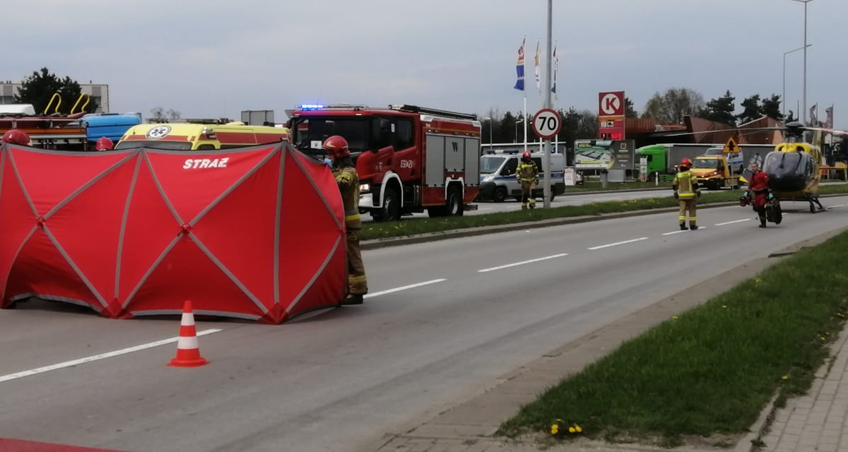 Poszkodowana to około 65-letnia kobieta. Została przetransportowana do szpitala śmigłowcem Lotniczego Pogotowia Ratunkowego.
