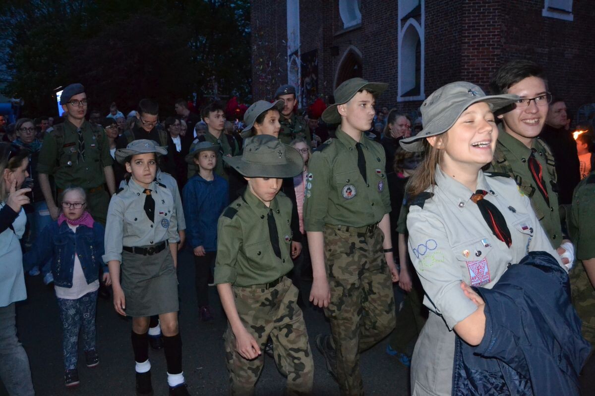 Po mszy świętej w kościele pw. Filipa i Jakuba tysiące żorzan wyruszyło w Procesję Ogniową ulicami miasta, a towarzyszył im blask pochodni.