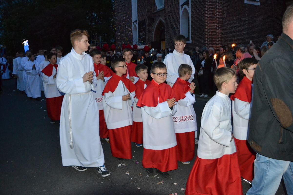 Procesja, rozpoczynająca się i kończąca w kościele pw. Filipa i Jakuba, przeszła ulicami Klimka, Moniuszki i Bałdyka. Po zmroku łuna płonących ogni przypomniała o wyjątkowym, spektakularnym charakterze święta.