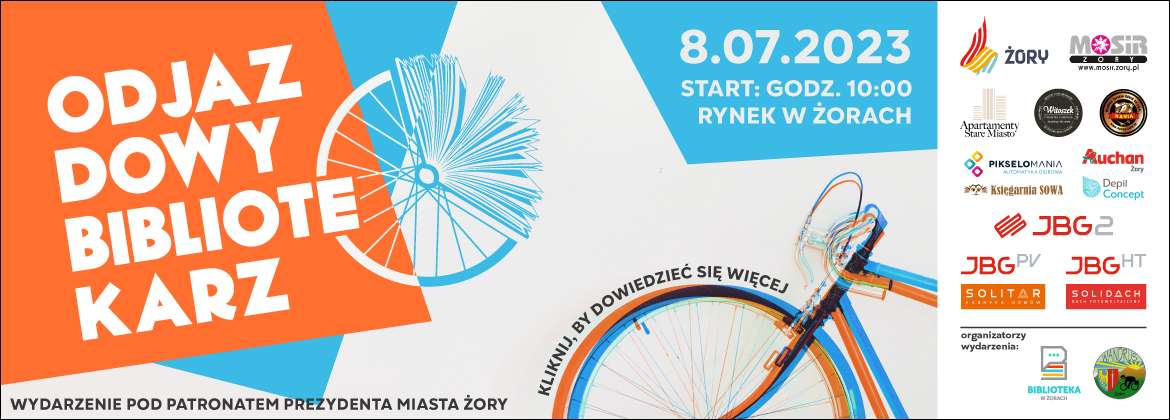Biblioteka w Żorach i Klub Turystyki Kolarskiej „Wandrus” zapraszają miłośników książek i rowerów na V Rajd Rowerowy "Odjazdowy Bibliotekarz" - 8 lipca (sobota) 10:00. Wydarzenie dedykowane jest czytelnikom oraz wszystkim miłośnikom książek, bibliotek i rowerów.