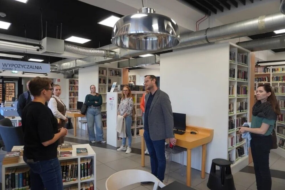Podczas wizyty goście mieli okazję odwiedzić nowoczesny budynek Miejskiej Biblioteki Publicznej, zlokalizowany w rewitalizowanym obiekcie starego młyna. Biblioteka powstała dzięki realizacji projektu pn. „Kolej przedsiębiorczości – rewitalizacja obiektów i przestrzeni dworca PKP i dawnego Młyna Elektrycznego w Żorach – etap II Spółdzielnia Kultury”. Uczestnicy poznali również działalność Biblioteki w nowym miejscu, której szczegóły przedstawił Dział Projektów i Marketingu MBP.
