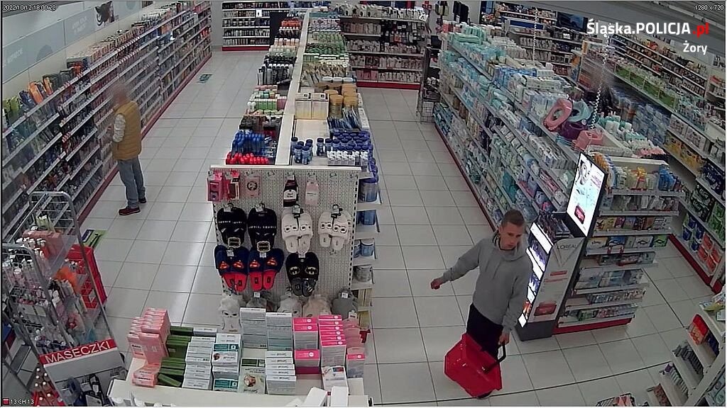 Drugim również mężczyzna podejrzewany o dokonanie kradzieży artykułów drogeryjnych o łącznej wartości prawie 2300 złotych, w dniu 12 grudnia 2022 roku o godzinie 18:15, w Żorach przy ul. Wodzisławskiej 11.