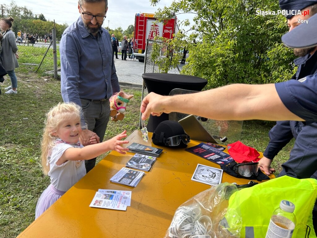 Stróże prawa włączyli się w ramach działań profilaktycznych w charytatywny piknik Parafii pw. Miłosierdzia Bożego w Żorach, a także odwiedzili uczestników jubileuszowego zlotu Hufca Związku Harcerstwa Polskiego Żory z okazji jego 90-lecia, na których to propagowali nie tylko bezpieczeństwo w ruchu drogowym, ale także stosowanie odblasków przez pieszych. Uczestnicy pikniku parafialnego mogli także usłyszeć na temat oszustw i zagrożeń, zarówno tych w rzeczywistości, jak i „cyberprzestrzeni”. Uwrażliwienie na problem, a także wiedza na temat sposobów przeciwdziałania zagrożeniom z pewnością pomaga ograniczyć jego negatywne skutki.