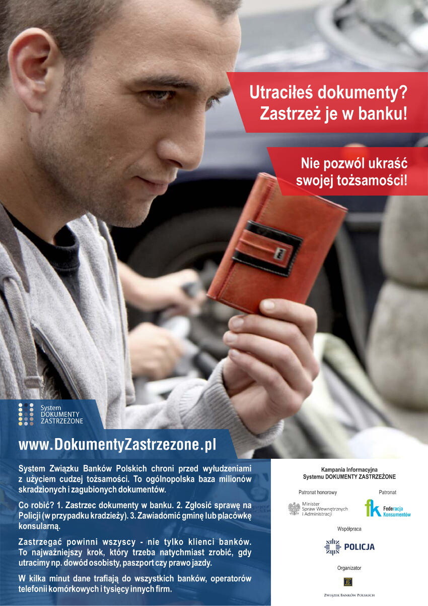 Przestępcy na cudze dokumenty wyłudzają kredyty, wynajmują nieruchomości, zakładają fikcyjne firmy, dokonują kradzieży samochodów i innych rzeczy. Według najnowszych danych w ciągu 11 lat trwania społecznej Kampanii Informacyjnej Systemu Dokumenty Zastrzeżone (realizowanej przez Związek Banków Polskich pod patronatem Ministerstwa Spraw Wewnętrznych i Administracji oraz we współpracy z Policją i Federacją Konsumentów) udaremniono ponad 83,4 tys. prób wyłudzeń kredytów na łączną kwotę 4,7 miliarda złotych.