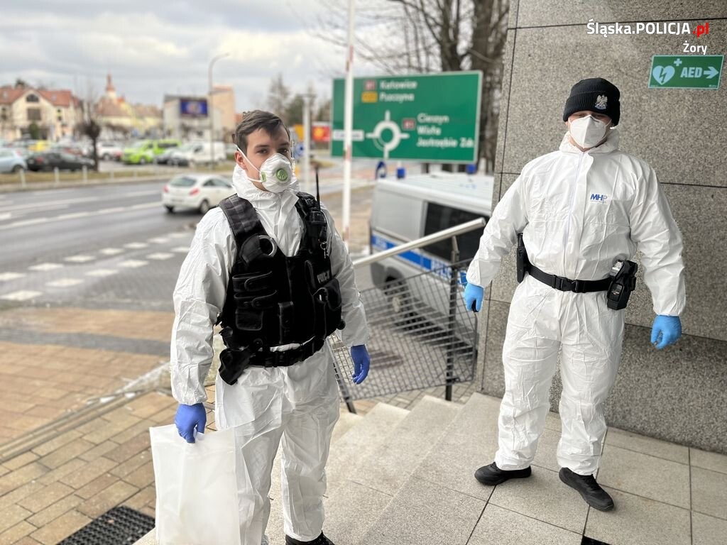W miniony wtorek dyżurny Komendy Miejskiej Policji w Żorach otrzymał zgłoszenie o tym, że mężczyzna miał stworzyć zagrożenie dla swojego życia. Po wstępnej weryfikacji zgłoszenia okazało się, że żorzanin objęty jest izolacją domową związaną z możliwością zainfekowania koronawirusem. W takiej sytuacji policjanci zobowiązani są do spełnienia szeregu obostrzeń, w tym założenia specjalnych zestawów ochronnych. Po przyjeździe na miejsce i udzieleniu niezbędnej pomocy zespół pogotowia ratunkowego zabrał mężczyznę do szpitala.
