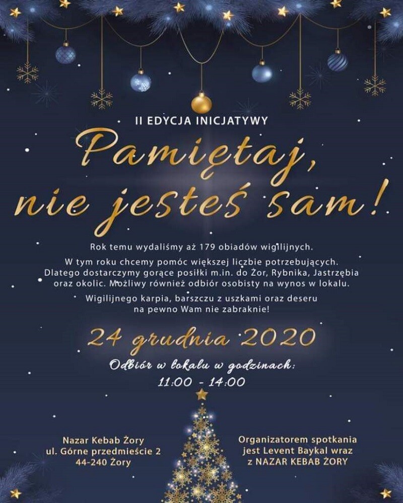 „Pamiętaj, nie jesteś sam!” – pod tym hasłem kryje się świąteczna akcja dobroczynna, którą już po raz drugi organizuje w naszym mieście Levent Baykal wraz z Nazar Kebab Żory.