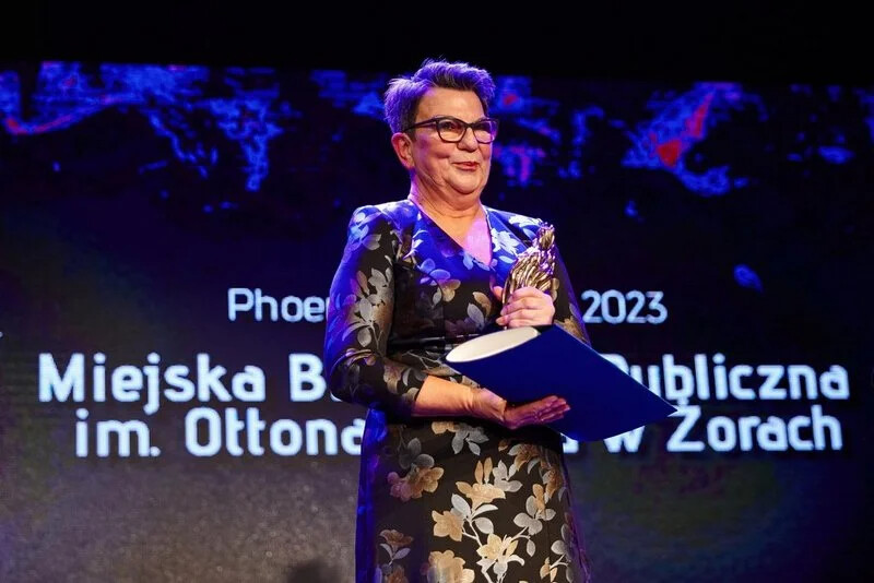Trzecim z tegorocznych laureatów nagrody Phoenix Sariensis została Miejska Biblioteka Publiczna im. Ottona Sterna w Żorach, w której imieniu statuetkę odebrała dyrektor Aleksandra Zawalska-Hawel. Ta niezwykła instytucja została powołana do życia 15 kwietnia 1946 roku. W 2021 roku świętowała więc piękny jubileusz 75-lecia swojej działalności. Przez wszystkie te lata jej misją było rozwijanie i zaspokajanie potrzeb oświatowych, informacyjnych i kulturalnych żorskiej społeczności. Po drodze wielokrotnie zmieniała swoją lokalizację, by w 2020 roku rozpocząć działalność w niezwykle nowoczesnej siedzibie, powstałej w budynku z bogatą historią w samym centrum naszego miasta. Nowa przestrzeń doskonale pasuje do profilu działalności Biblioteki - przyciąga swoją nowoczesnością, niebanalnymi rozwiązaniami i bogactwem możliwości. Miejska Biblioteka Publiczna im. Ottona Sterna to instytucja na najwyższym europejskim poziomie, przyjazna osobom z niepełnosprawnościami, posiadająca szeroką i konkurencyjną ofertę działalności kulturalnej i edukacyjnej o charakterze nie tylko regionalnym, ale też ponadregionalnym, a nawet międzynarodowym. Pod wodzą charyzmatycznej Pani Dyrektor instytucja ta stała się propagatorem idei uczenia się przez całe życie, a swoimi działaniami obejmuje dzieci, młodzież, pracujących, bezrobotnych i seniorów. Promuje czytelnictwo, organizuje spotkania z ludźmi kultury i warsztaty z różnych, często zaskakujących dziedzin. Organizuje też wystawy prac artystów amatorów jak i profesjonalistów. Wszystkie te wydarzenia odbywają się bezpłatnie, m.in. dzięki bardzo skutecznemu pozyskiwaniu środków zewnętrznych. Na arenie ogólnopolskiej wielokrotnie doceniana i nagradzana była zarówno działalność Biblioteki, jak i siedziba w której tę działalność prowadzi. Wniosek o przyznanie nagrody dla żorskiej Biblioteki złożył Adrian Lubszczyk – naczelnik Wydziału Promocji, Kultury i Sportu Urzędu Miasta Żory.