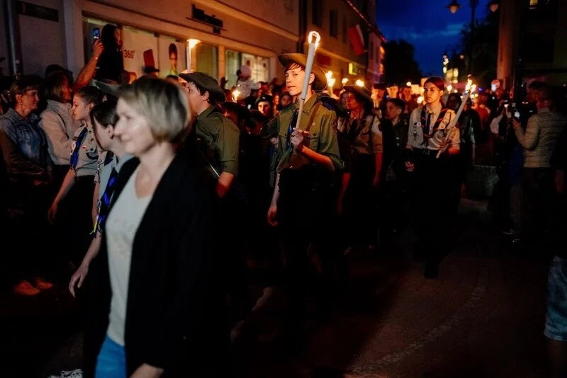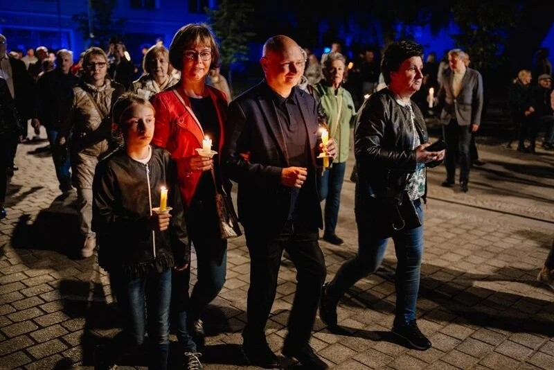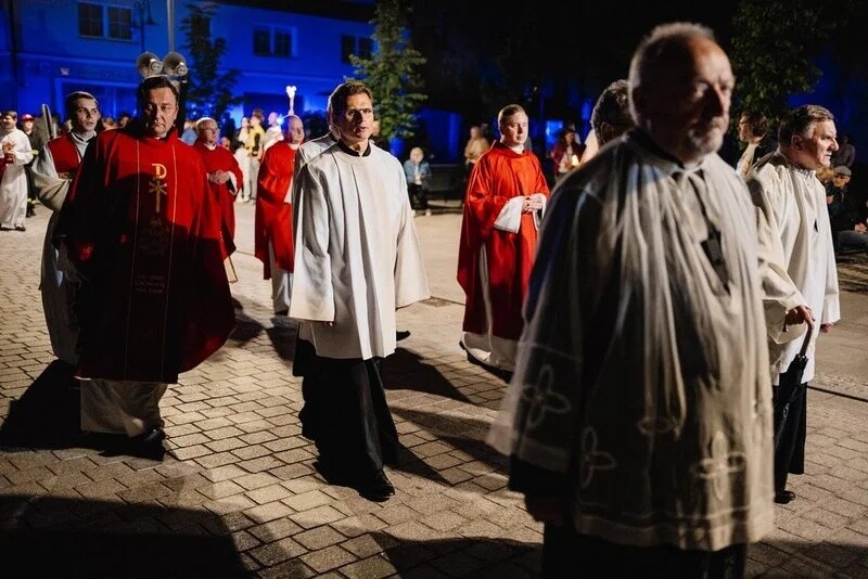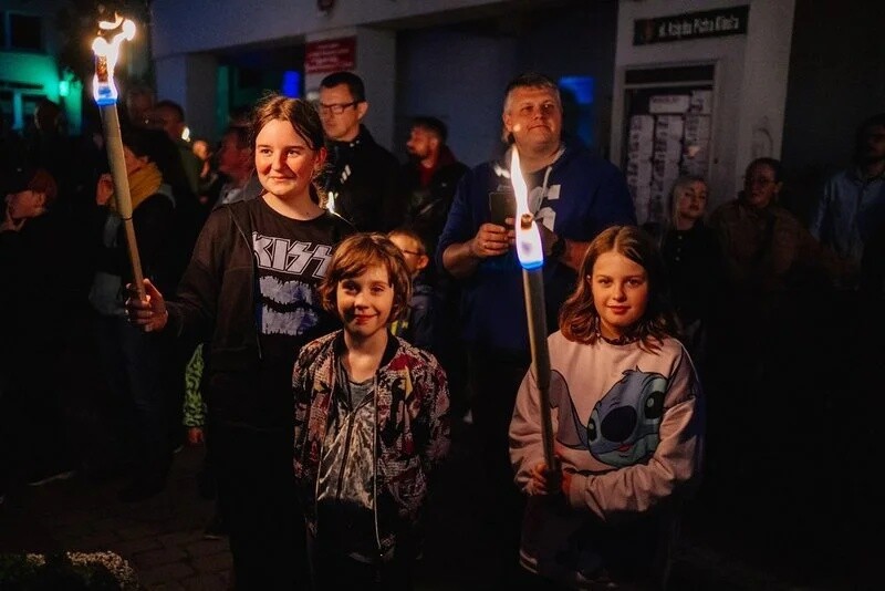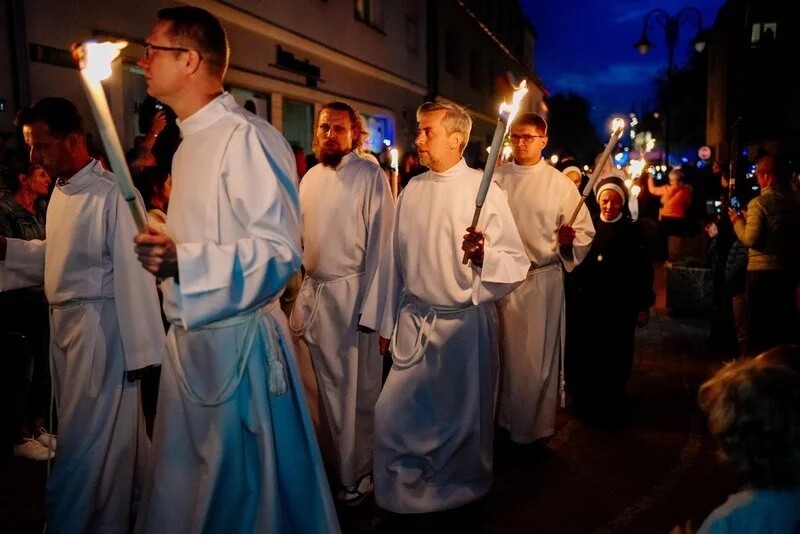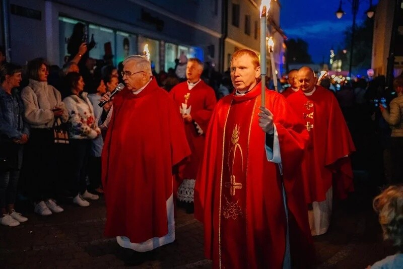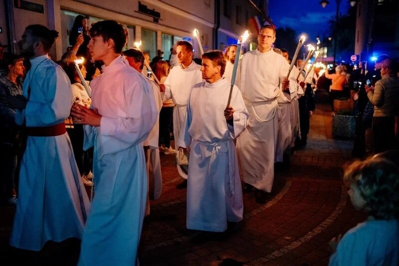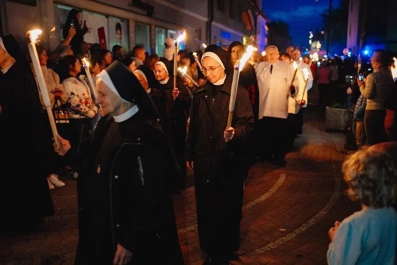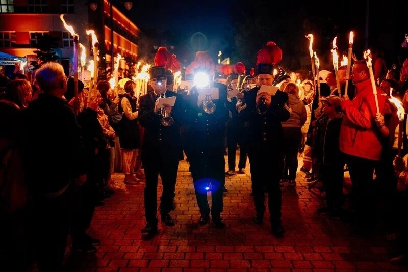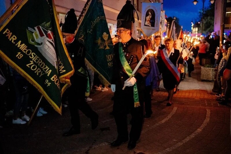 Następnie w kościele pw. św. św. Filipa i Jakuba w Żorach odbyła się uroczysta msza święta, celebrowana przez abp. Adriana Galbasa. Po niej licznie zgromadzeni mieszkańcy i goście, niosąc w dłoniach płonące pochodnie, przeszli uliczkami starego miasta w uroczystej procesji, rozświetlając Żory blaskiem pochodni.