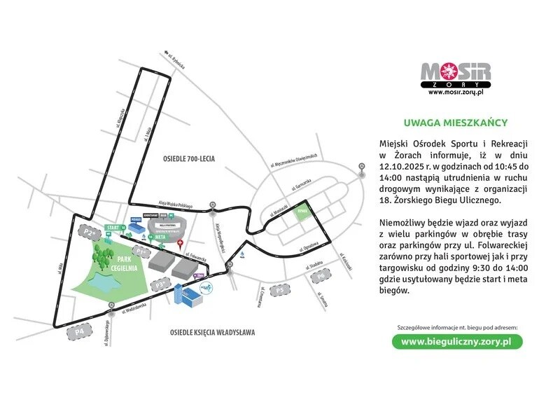 W związku z 18. Żorskim Biegiem Ulicznym w dniu 12 października 2025 r. (niedziela), ze względu na zamknięcia dróg, w godzinach od około 10:30 do 14:00 autobusy nie będą obsługiwały niektórych przystanków.